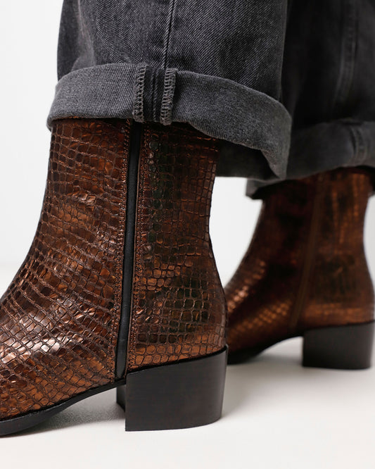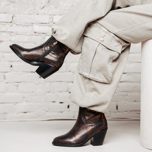 Normale prijs 189,95Normale prijsEenheidsprijs per189,95Aanbiedingsprijs 189,95Bronskleurige enkellaarsjes