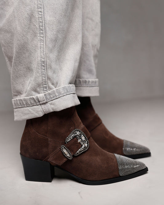 Voor de ontwikkeling van onze collectie gebruiken we alleen de beste materiaalsoorten. Onze suède enkellaarsjes zijn gemaakt van superzacht, licht opgeschuurd Italiaans suède. Door je suède laarzen af en toe te borstelen houd je de kleur van je laarzen in stand. Het gebruik van suède geeft je enkellaarsjes dames een warme look. De finishing touch van je outfit!
