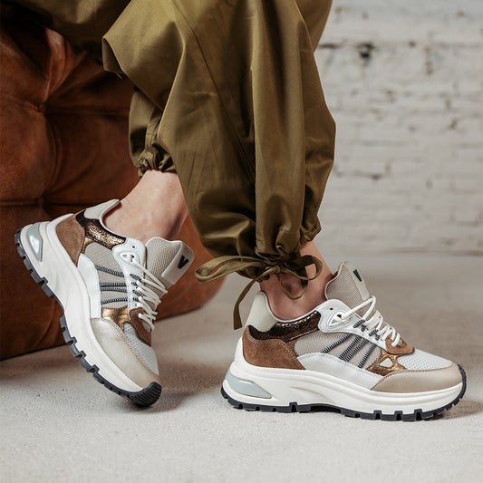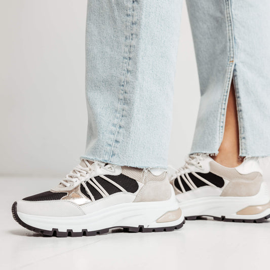 Een groot deel van onze sneakercollectie is geïnspireerd op de dad sneaker trend. Deze trend kenmerkt zich door de robuuste, chunky zool, die meestal wit van kleur is. Ook een combinatie van verschillende materialen, zoals glad leer, suède en technisch nylon, is typerend voor de dad sneaker. Met deze trendy sneakers ga jij zeker niet onopgemerkt over straat!