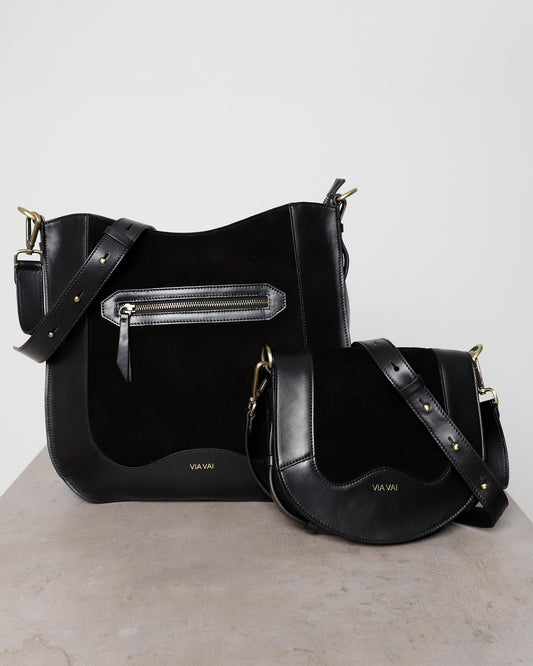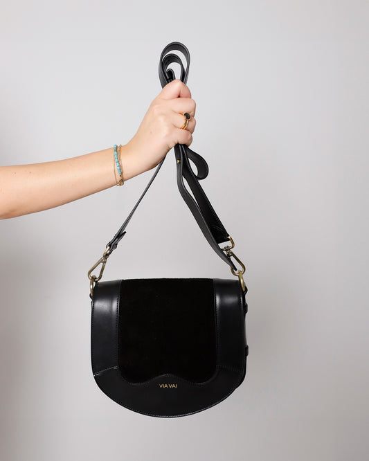 De suede crossbody tas van VIA VAI is gemaakt van hoogwaardig suède leer. Dit is leer dat op een speciale manier behandeld is waardoor deze een fluweelzachte finish heeft.