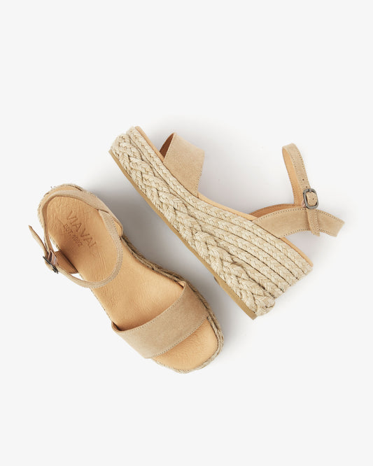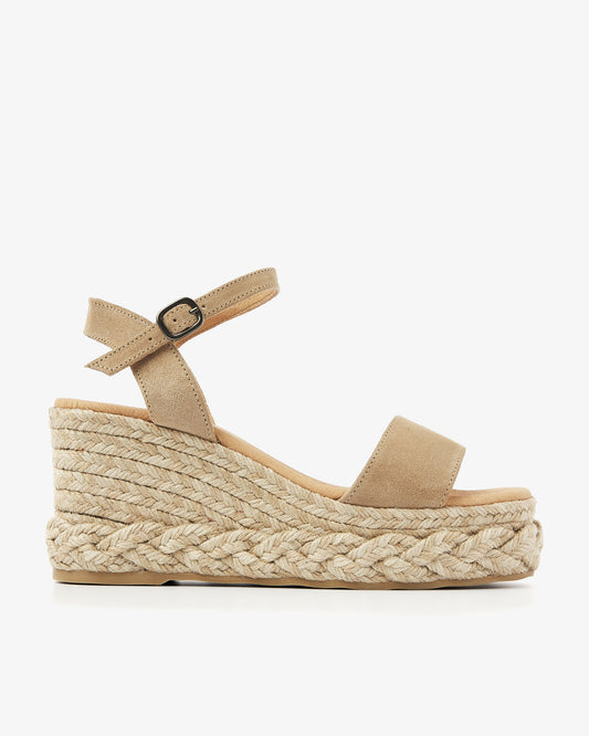 Espadrilles are characterized by the typical braided rope sole. This immediately gives a summery feeling! In addition, these elegant sandals look great under your flowing summer dresses and skirts. In our collection you will discover suede espadrilles with a peep toe nose and adjustable strap around the heel.