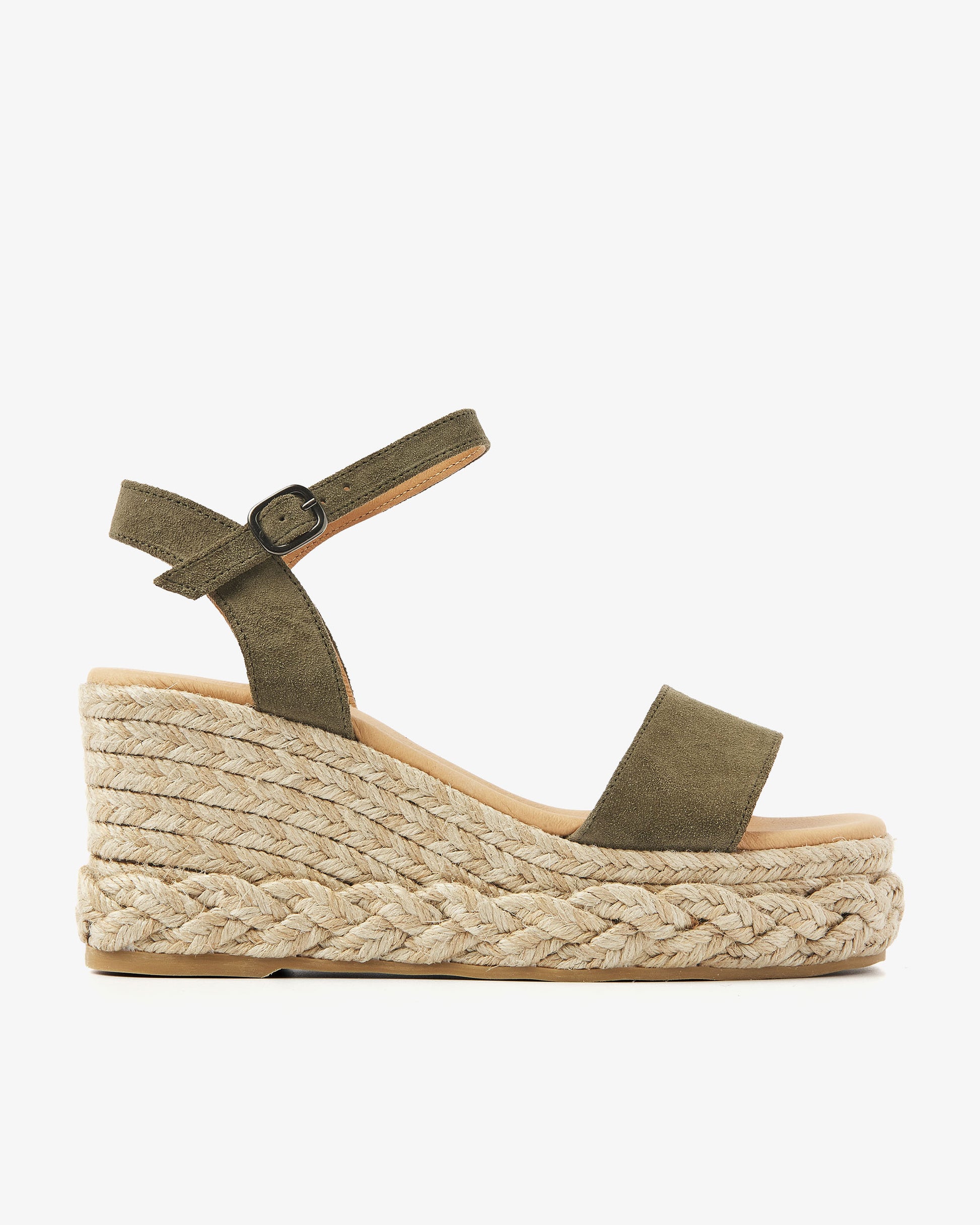 Sommerstemning garanteret. Disse espadrilles i ruskind med elegante kilehæle er den perfekte blanding af komfort og stil. Den justerbare ankelrem sikrer den perfekte pasform, mens remmen over forfoden smukt omslutter din fod. De flettede detaljer på sålen fuldender Capri Neva-sandaler. Et rigtigt must-have for alle skoelskere. Klar til at løfte dit look?