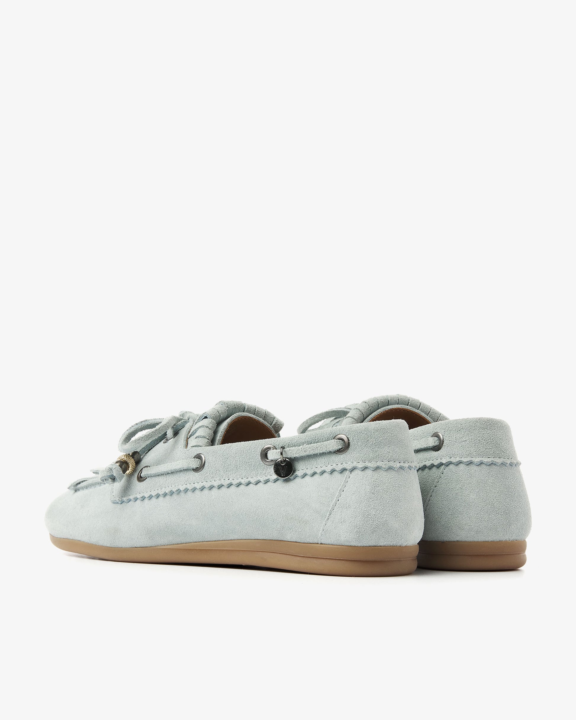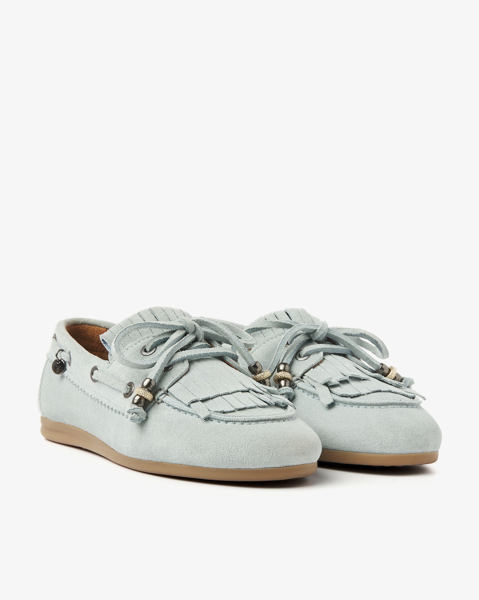 Nogle gange vil man bare have en sko, som man kan bruge til alt, men som har det lille ekstra. Disse lyseblå mokkasiner er netop det. June Loua har en klassisk mokkasinform med en afrundet tå og en fleksibel, lysebrun sål lavet af behageligt gummi. De iøjnefaldende snøredetaljer rundt om siden giver den det autentiske bådsko-look, mens frynserne på vristen skaber en legende og afslappet effekt. Og den elegante sløjfe med dekorative perler? Det er det, der gør June Loua komplet!