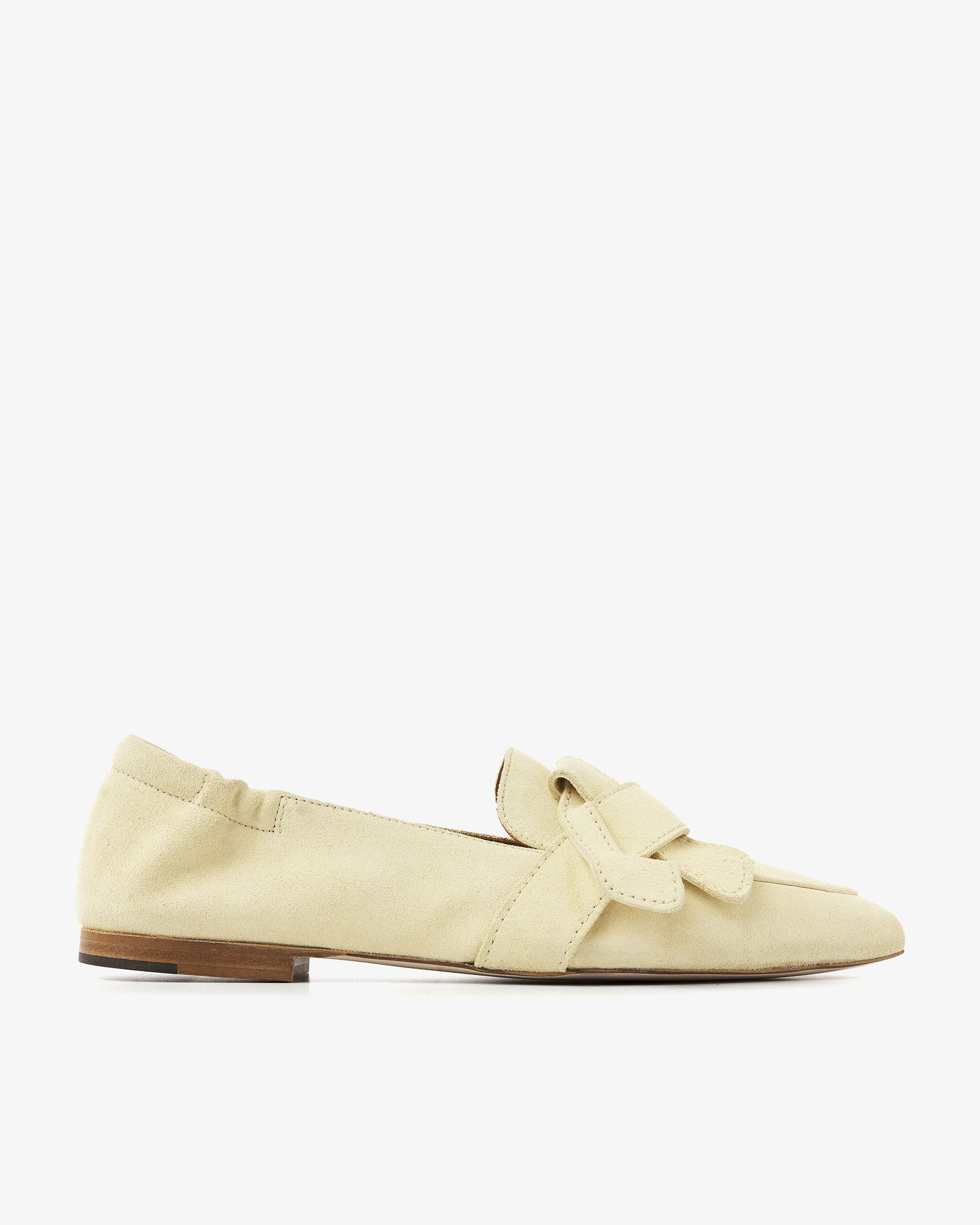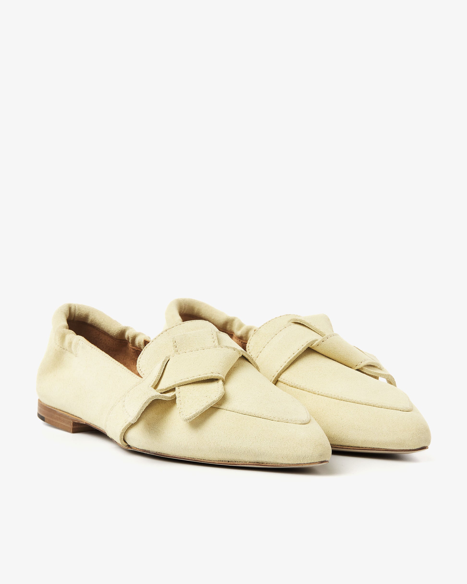 Elegant, stilfuldt & sofistikeret: det er sådan, vi vil beskrive Lola Rayne. Det, der gør disse loafers unikke, er den elegante 'knude' på vristen, som skaber et ultra-feminint look. De gule loafers har en elastisk hæl og opskummet fodseng for ekstra komfort.