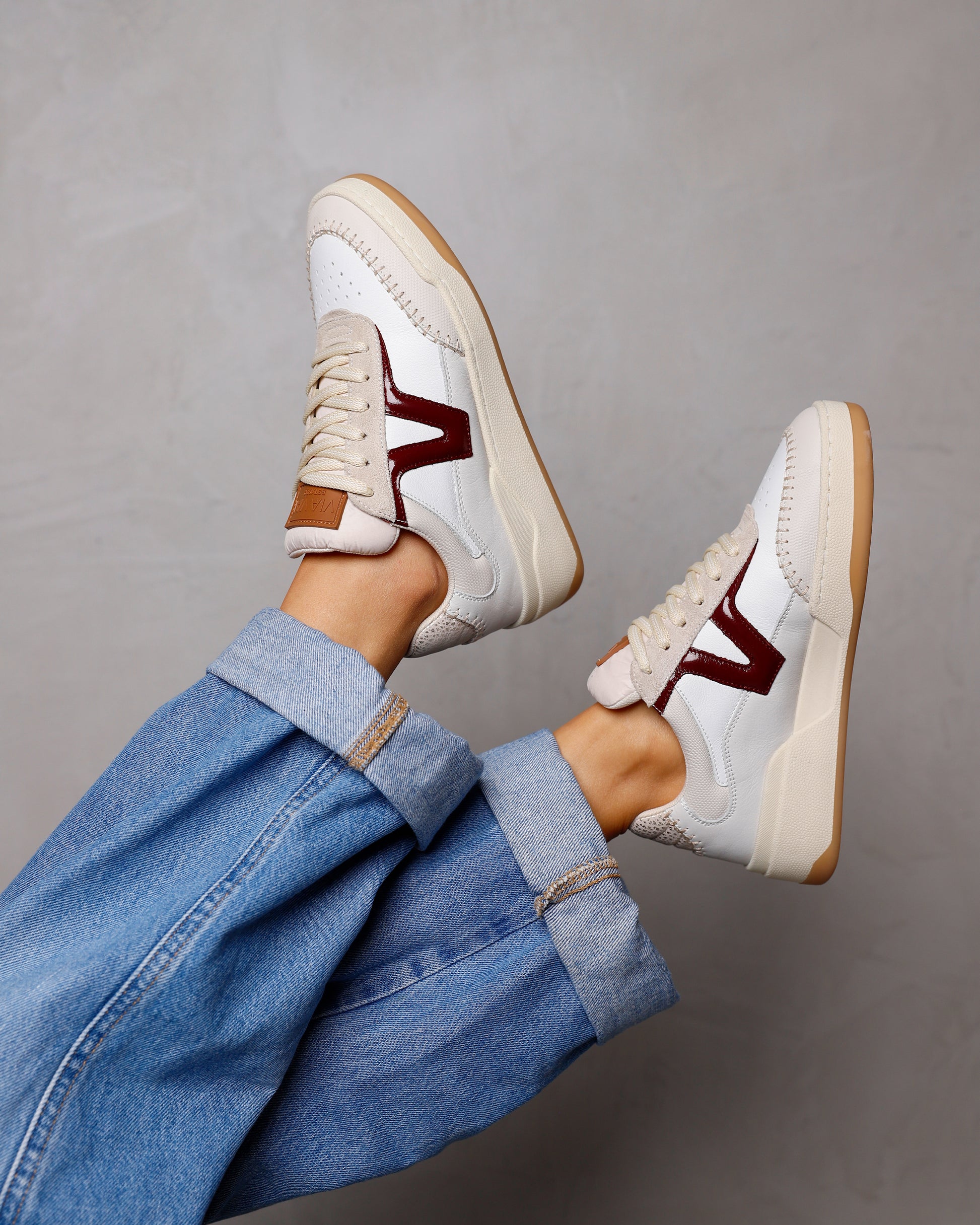 From casual to classy: thanks to the contemporary look, Sam Olivia can be styled in various ways. For example, combine the VIA VAI sneakers with loose-fitting trousers and a t-shirt with a cardigan over it for a sophisticated vibe. To finish the retro look in your outfit, wear Sam Olivia with flared jeans and a cropped bomber.