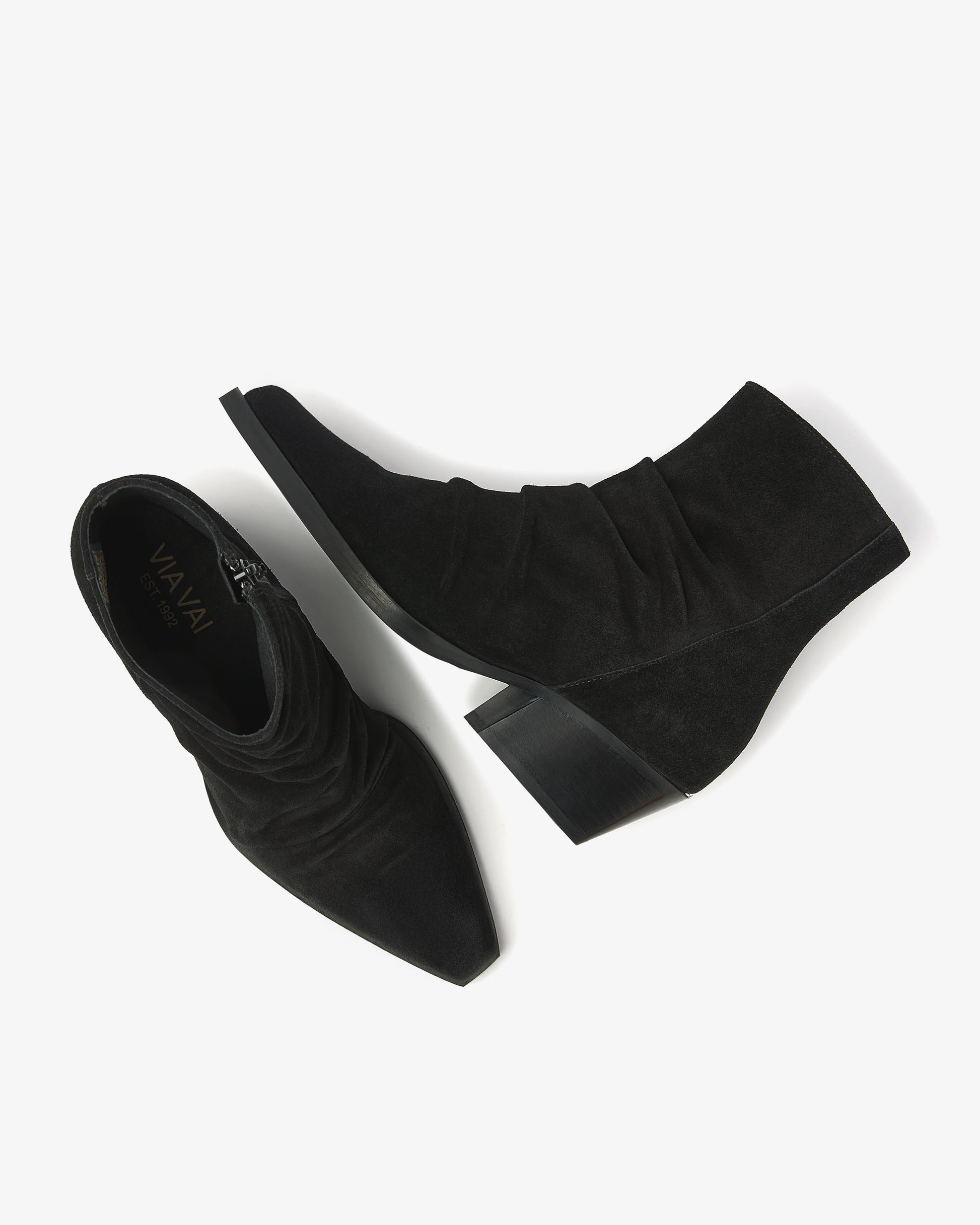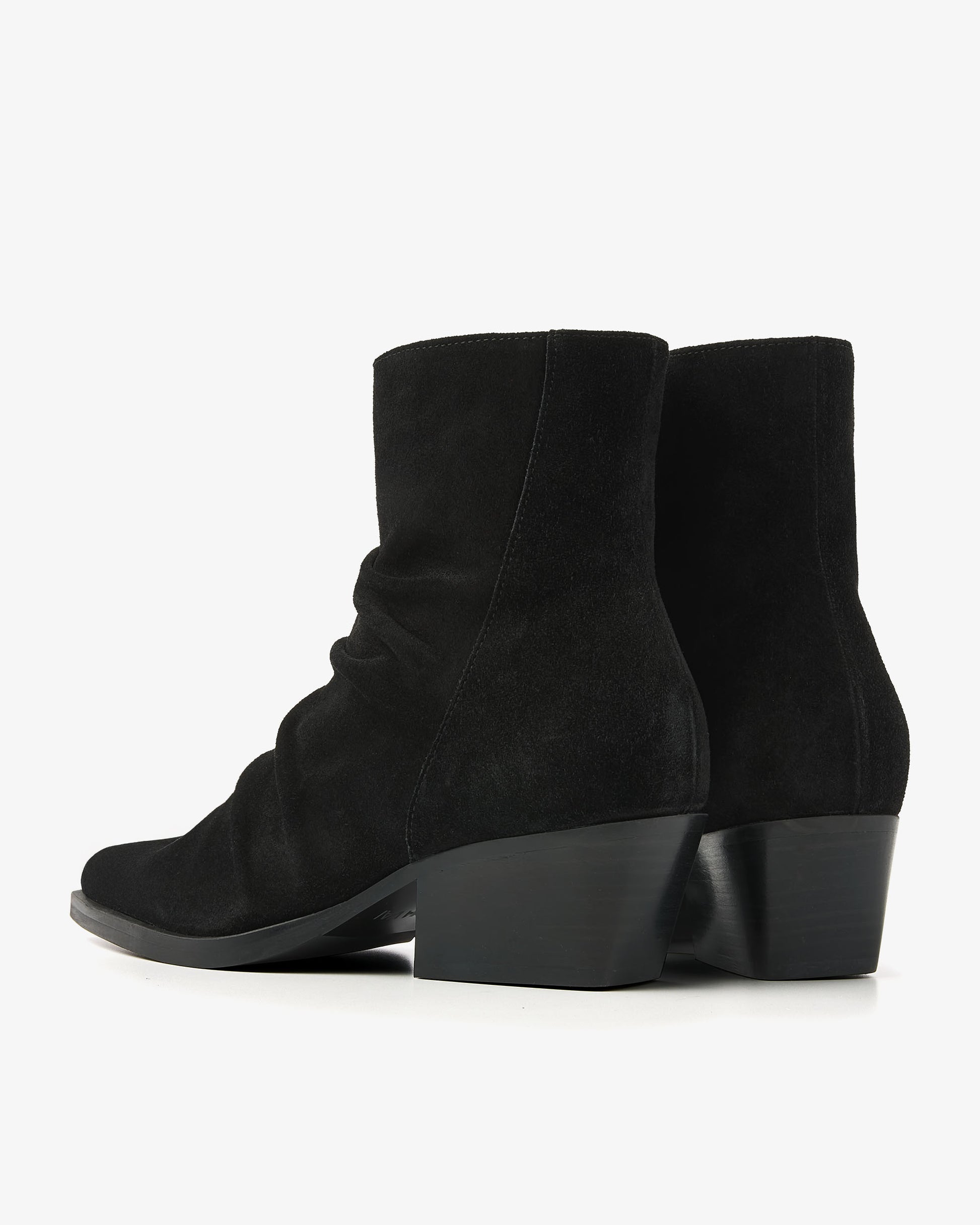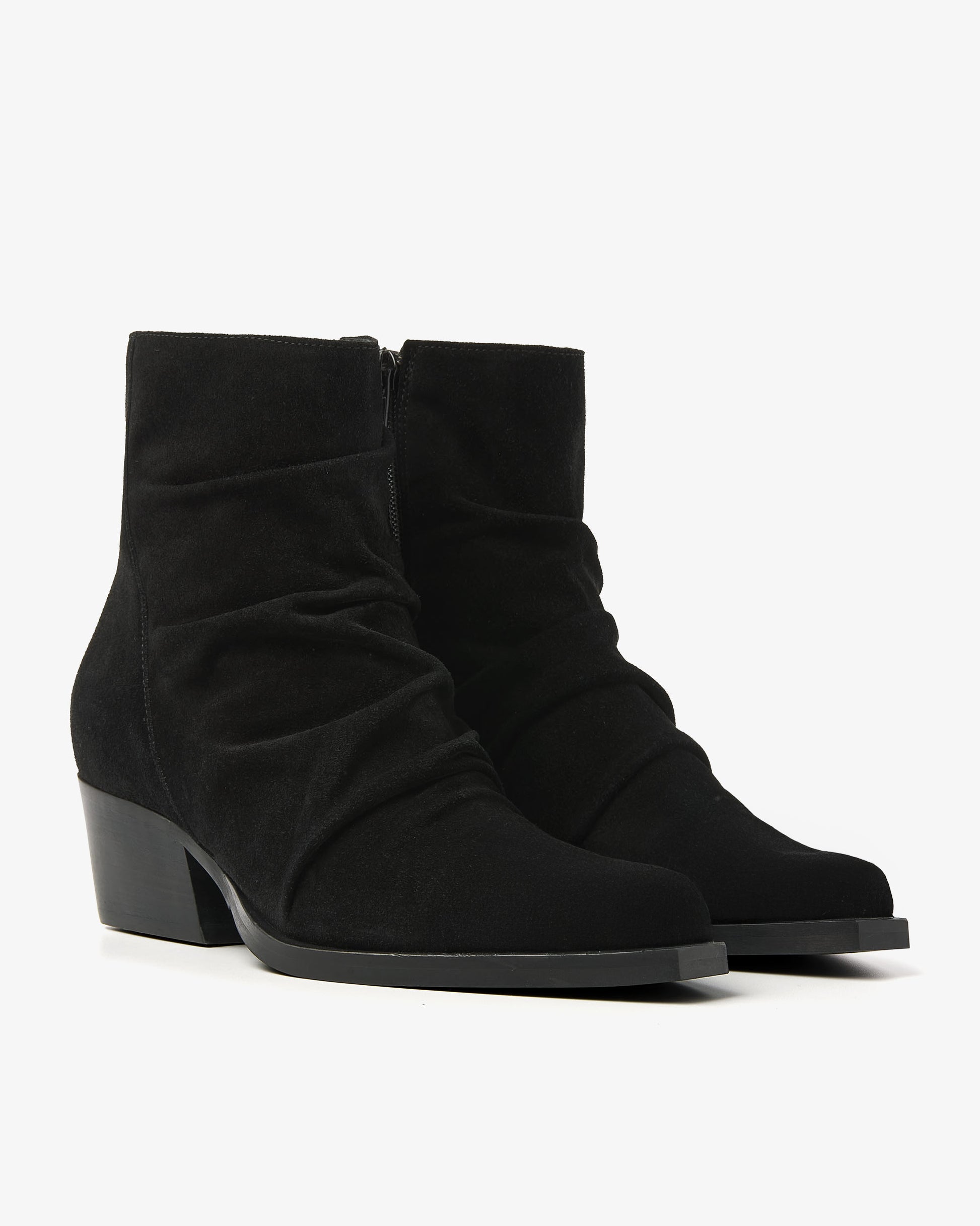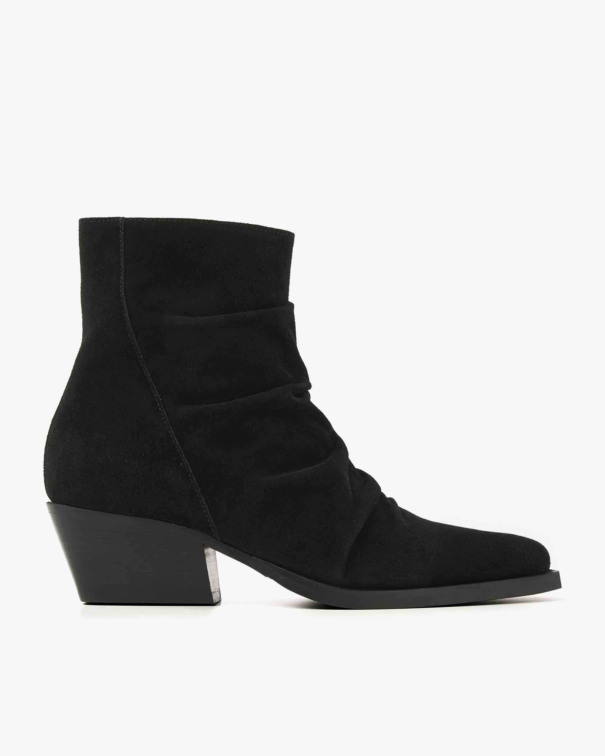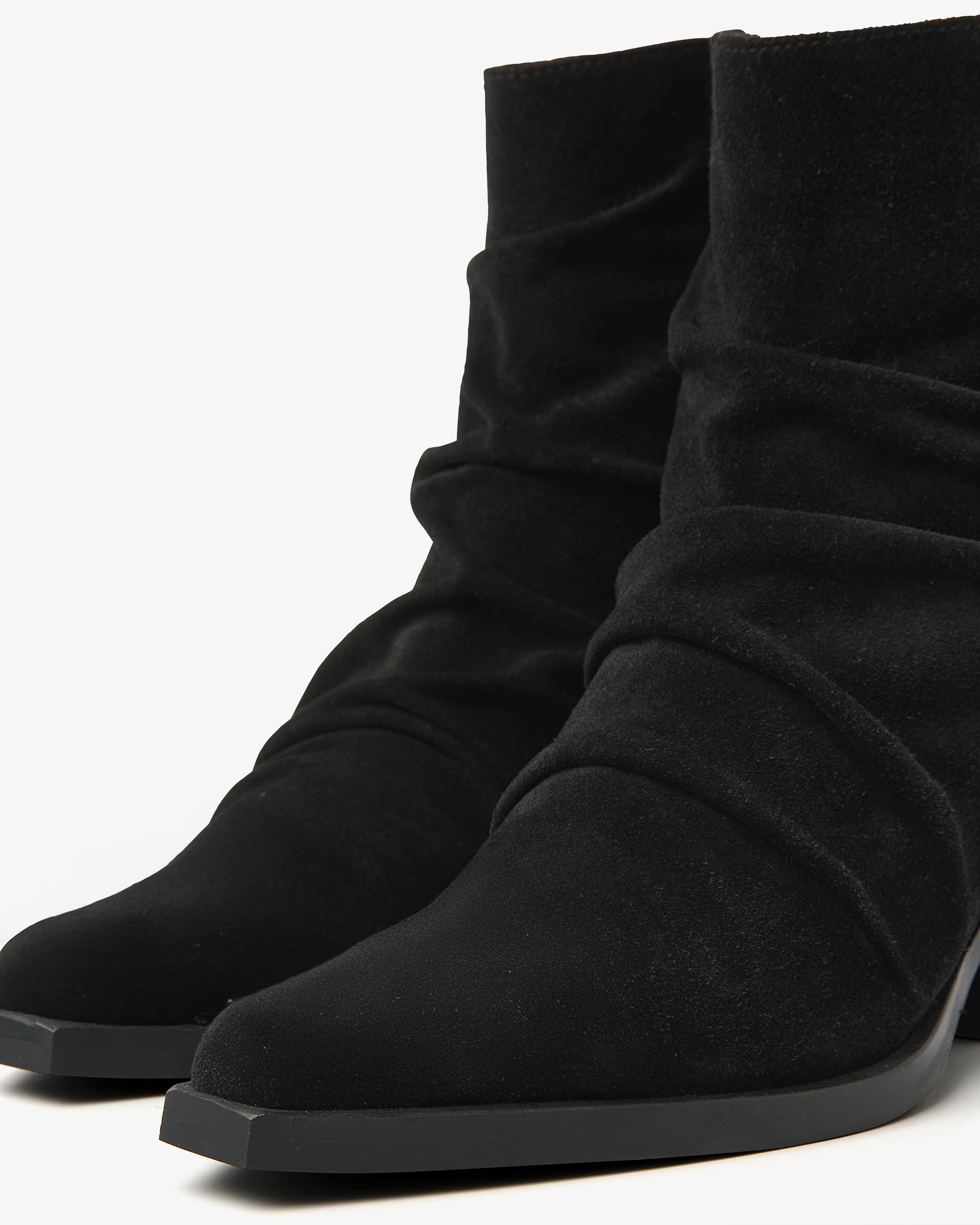 Are you looking for an elegant ankle boot with an edgy twist? Meet Do Berkley. With the pleated accent and pointed toe, this boot is an ultimate must-have. These black ankle boots have a block heel and are made of high-quality suede with a decorative seam on the side: casual yet feminine.