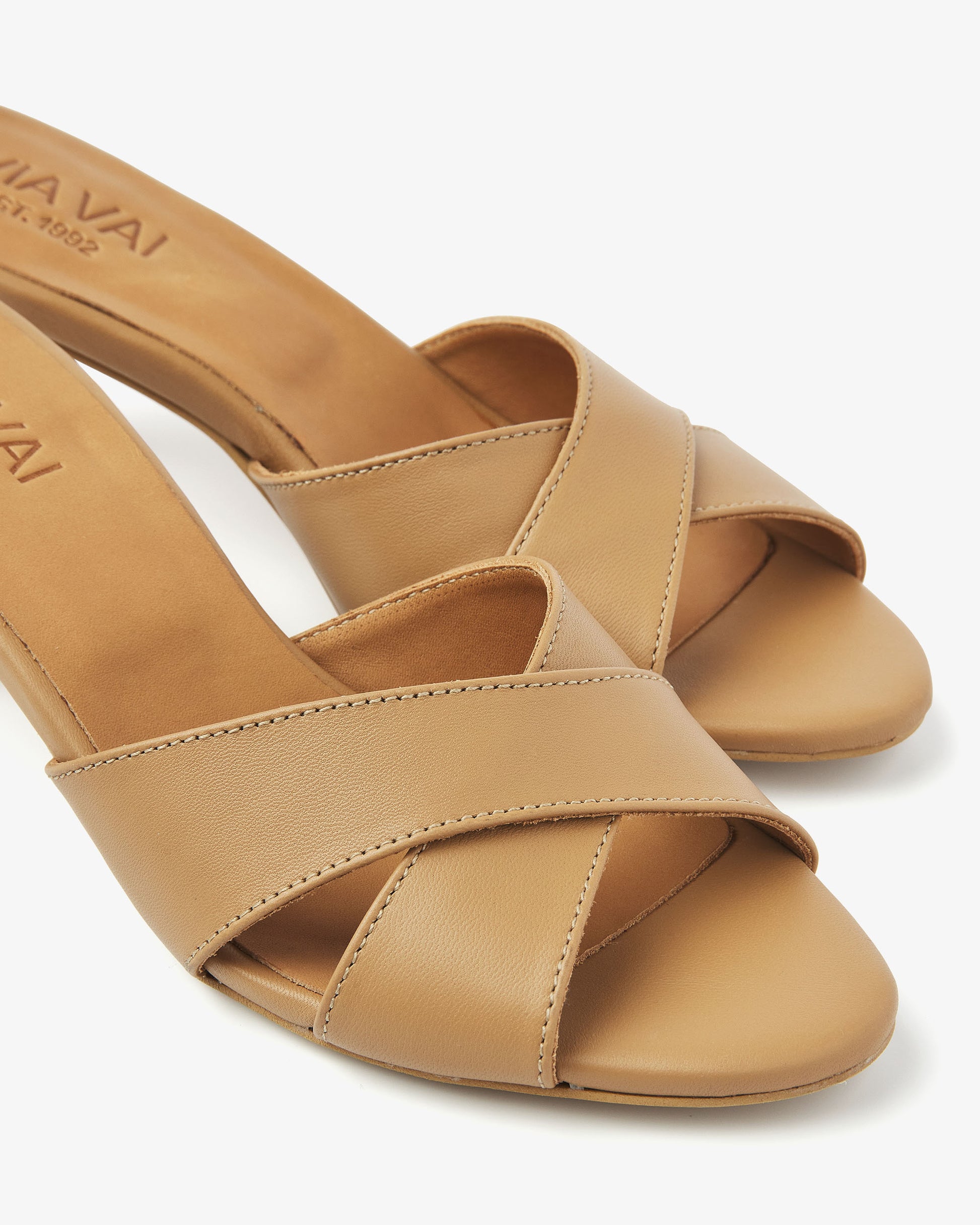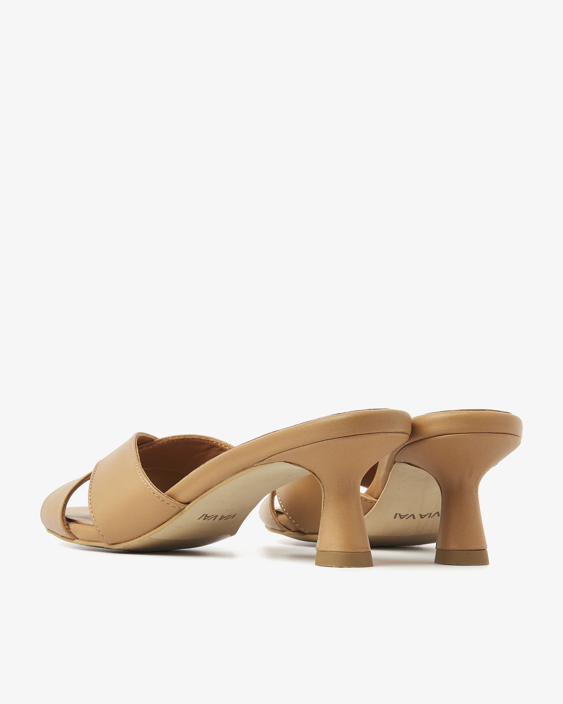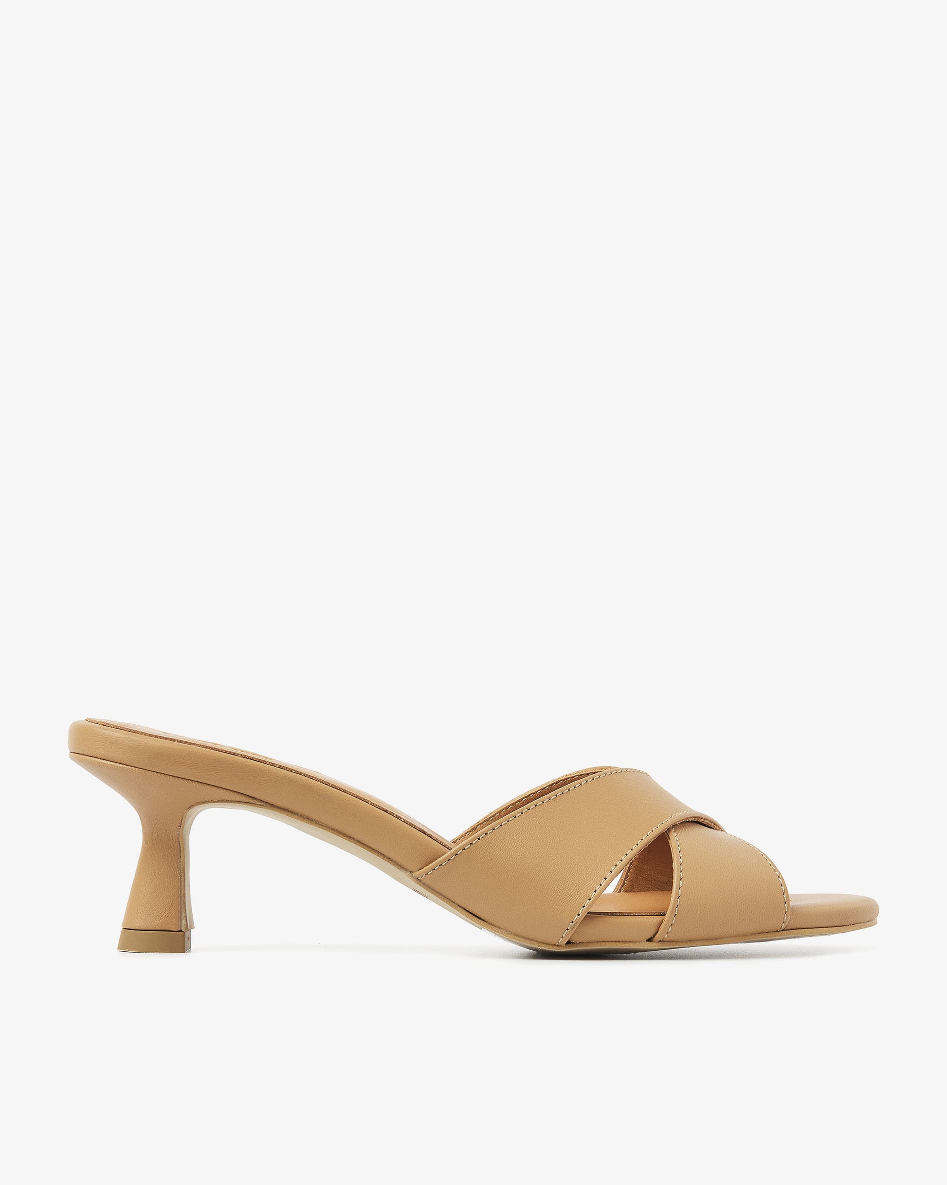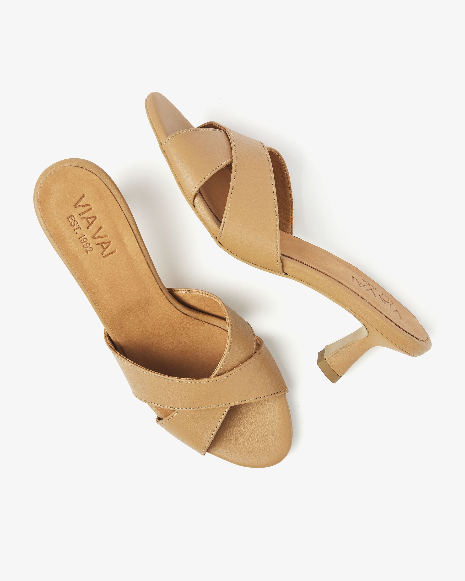 Meet this season's must-have sandal: Lily Celia! These mules are made from high-quality leather and finished in a timeless cognac color. The kitten heel offers the perfect balance between comfort and style, allowing you to easily transition from a day in the city to a night out. The crossed straps complete the feminine look; with Lily Celia, you'll always be on point.