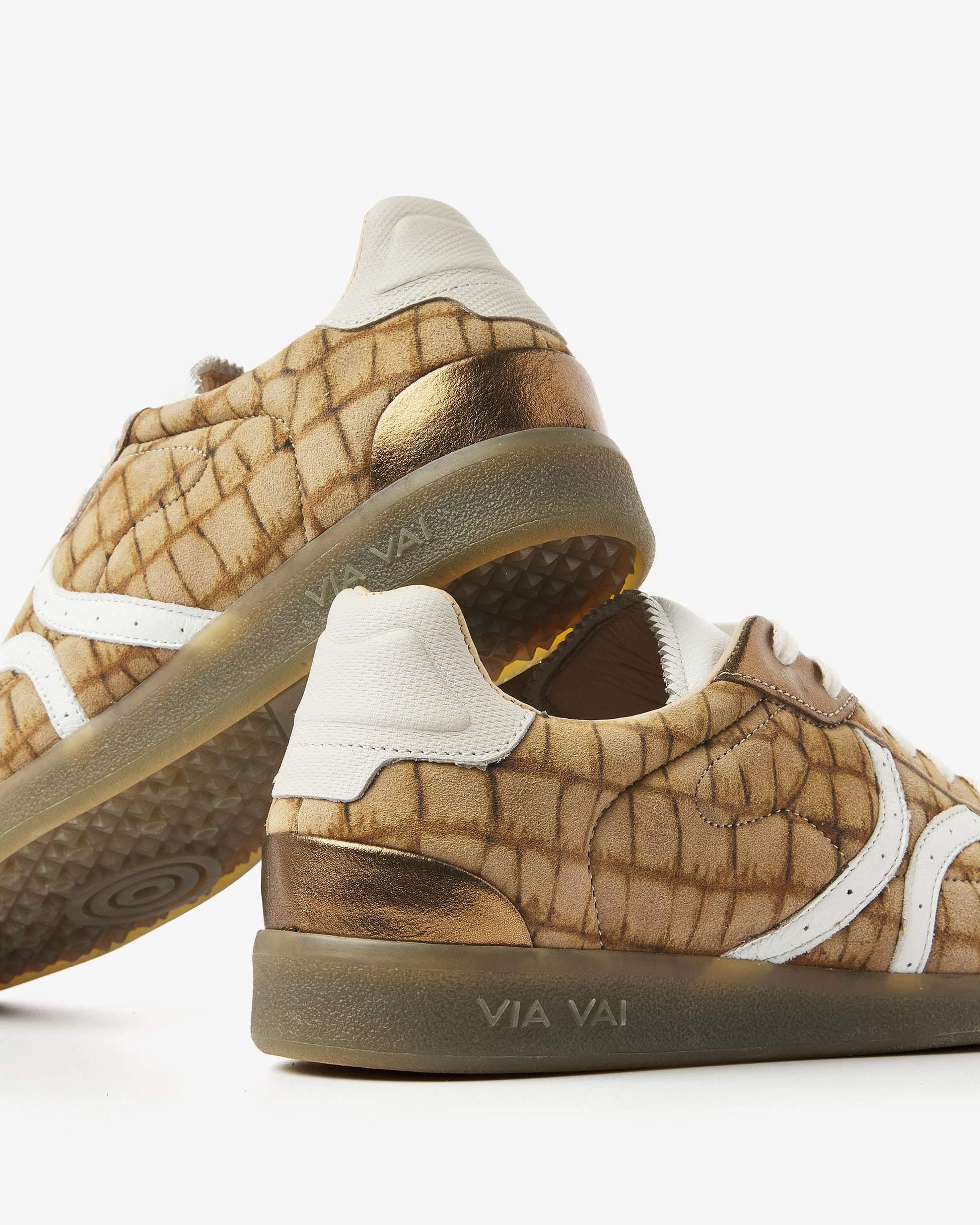 The Nilla Khloe sneaker combines a retro look with a modern flair. This distinctive sneaker gives every outfit a sporty boost and creates a contemporary look. The playful croco print adds a bold accent and is perfectly complemented by subtle metallic details. A stylish essential that should not be missing from your wardrobe!