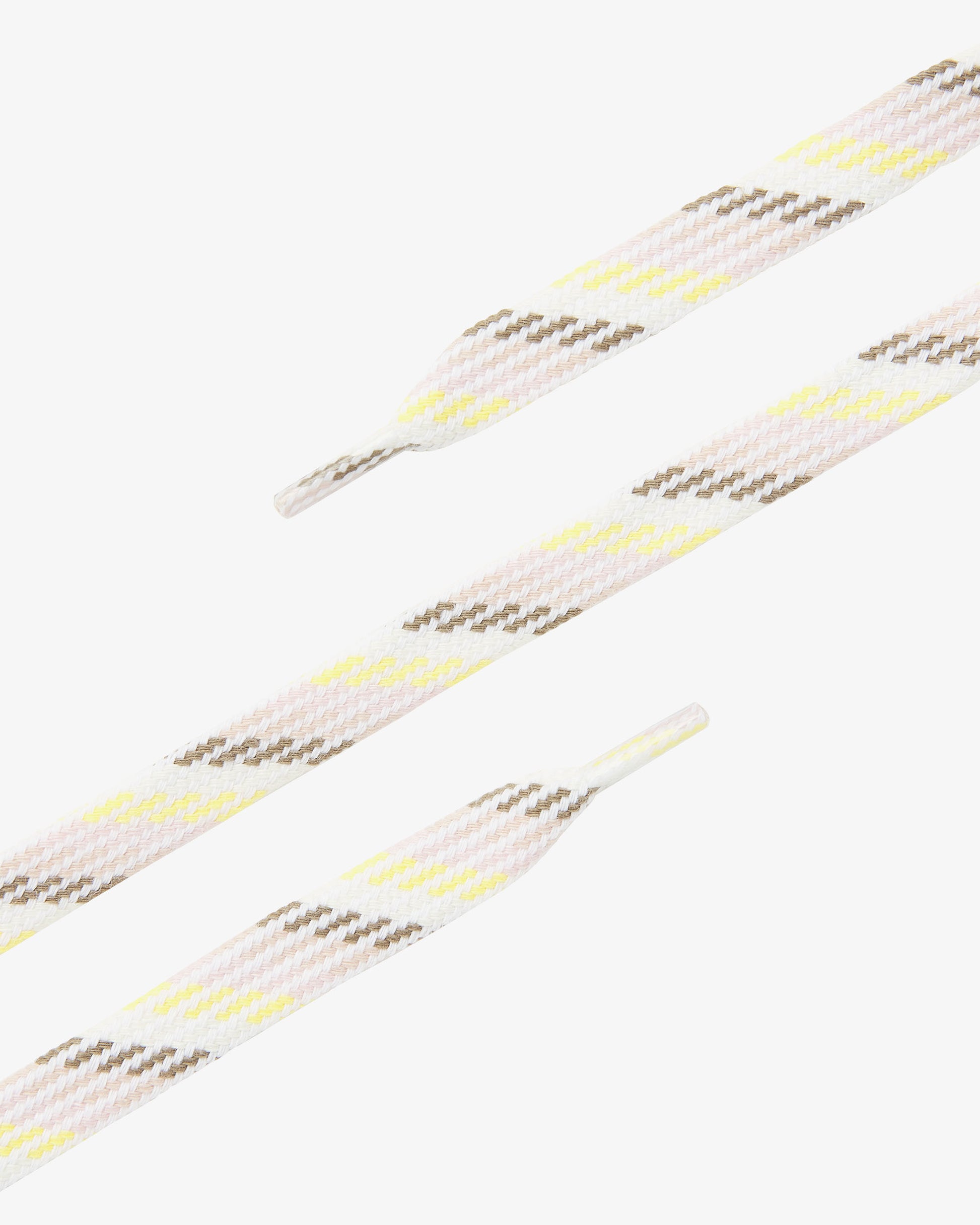 Are your favorite VIA VAI sneakers in need of new laces, or do you want to give your shoes a new look? Discover the flat laces from VIA VAI then. The white laces with brown, pink and yellow details are made of high-quality polyester and finished with a plastic nestle. With a length of 120 cm, the flat laces are perfect for your favorite VIA VAI sneakers.