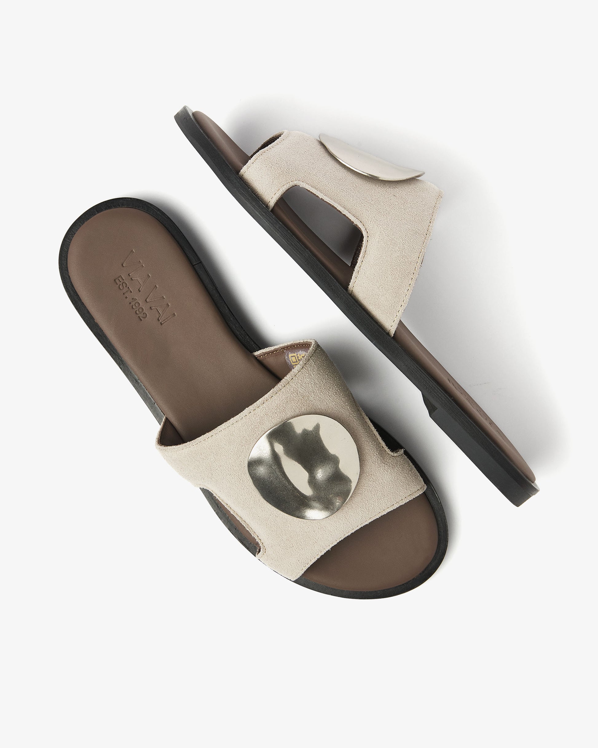 Looking for summer slippers that combine comfort and elegance? Meet Vita Avi. These grey slippers have a flat sole and wide straps that ensure a comfy fit and a stylish look. The silver-colored accent on the instep gives the slippers an eye-catching effect, instantly adding a touch of luxury to your outfit. Go rock your summer look!