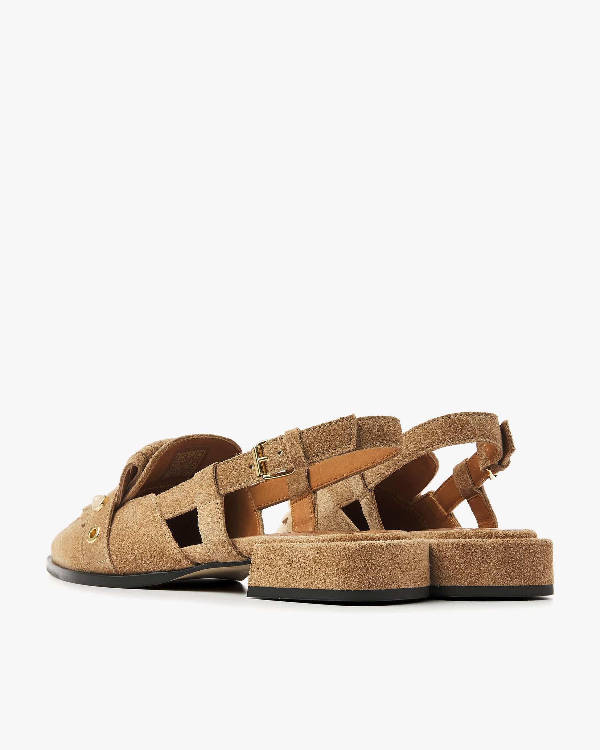 - Fringe detailing with gold studs on instep