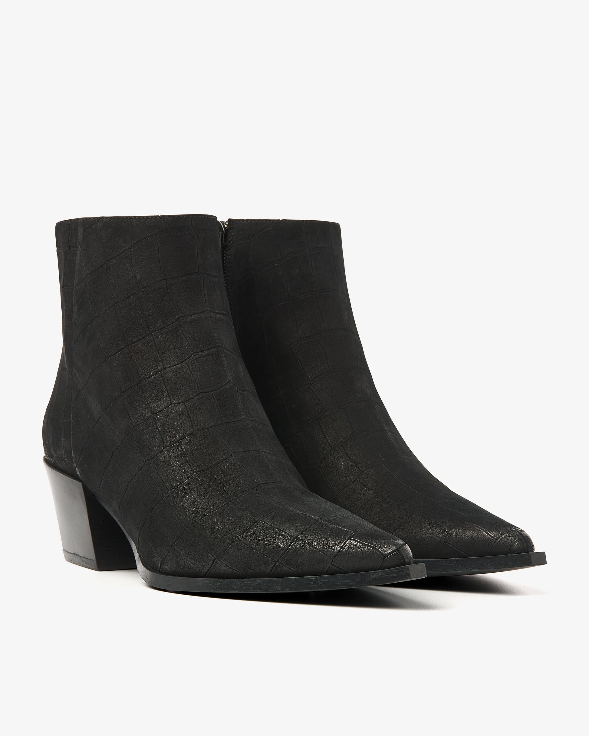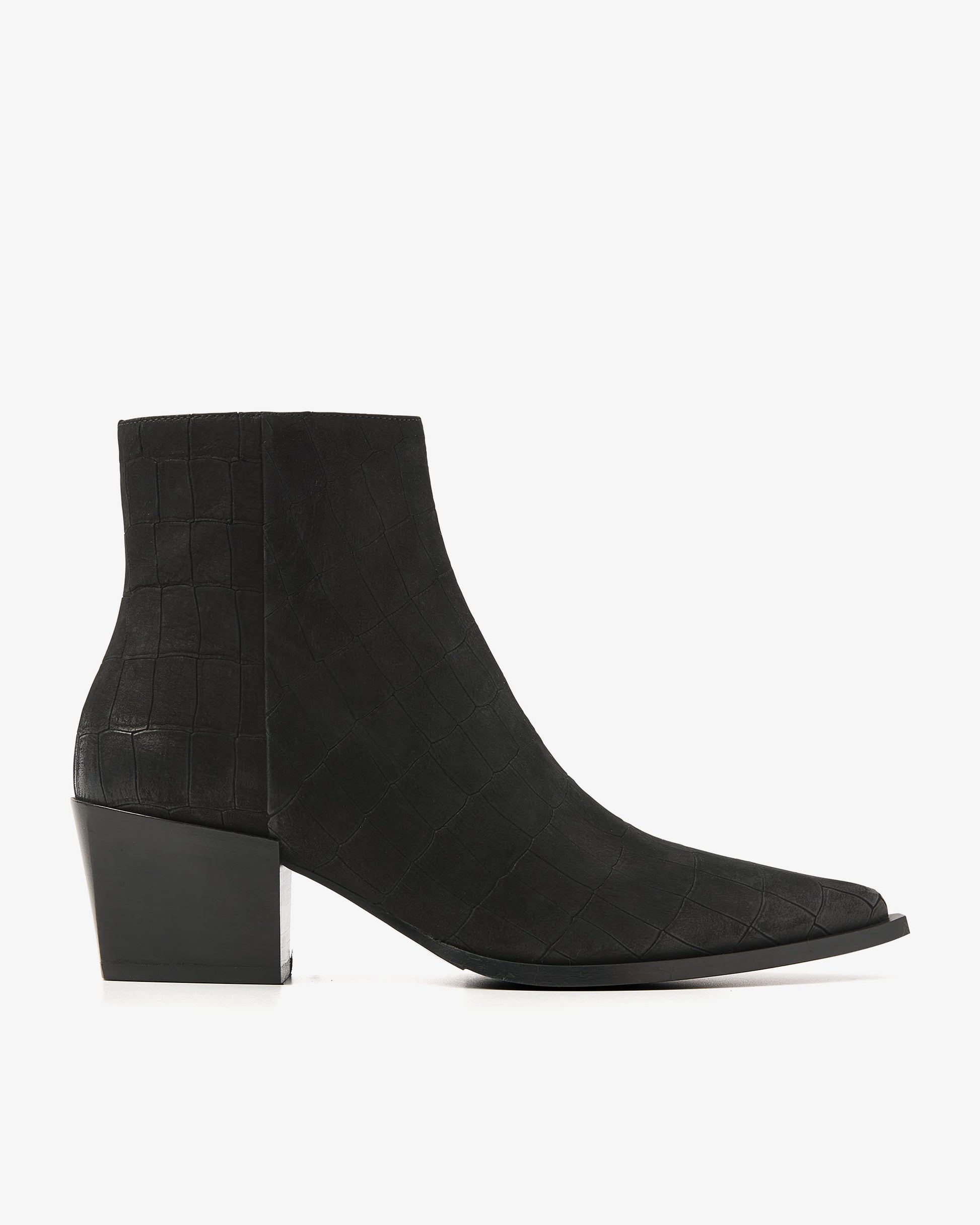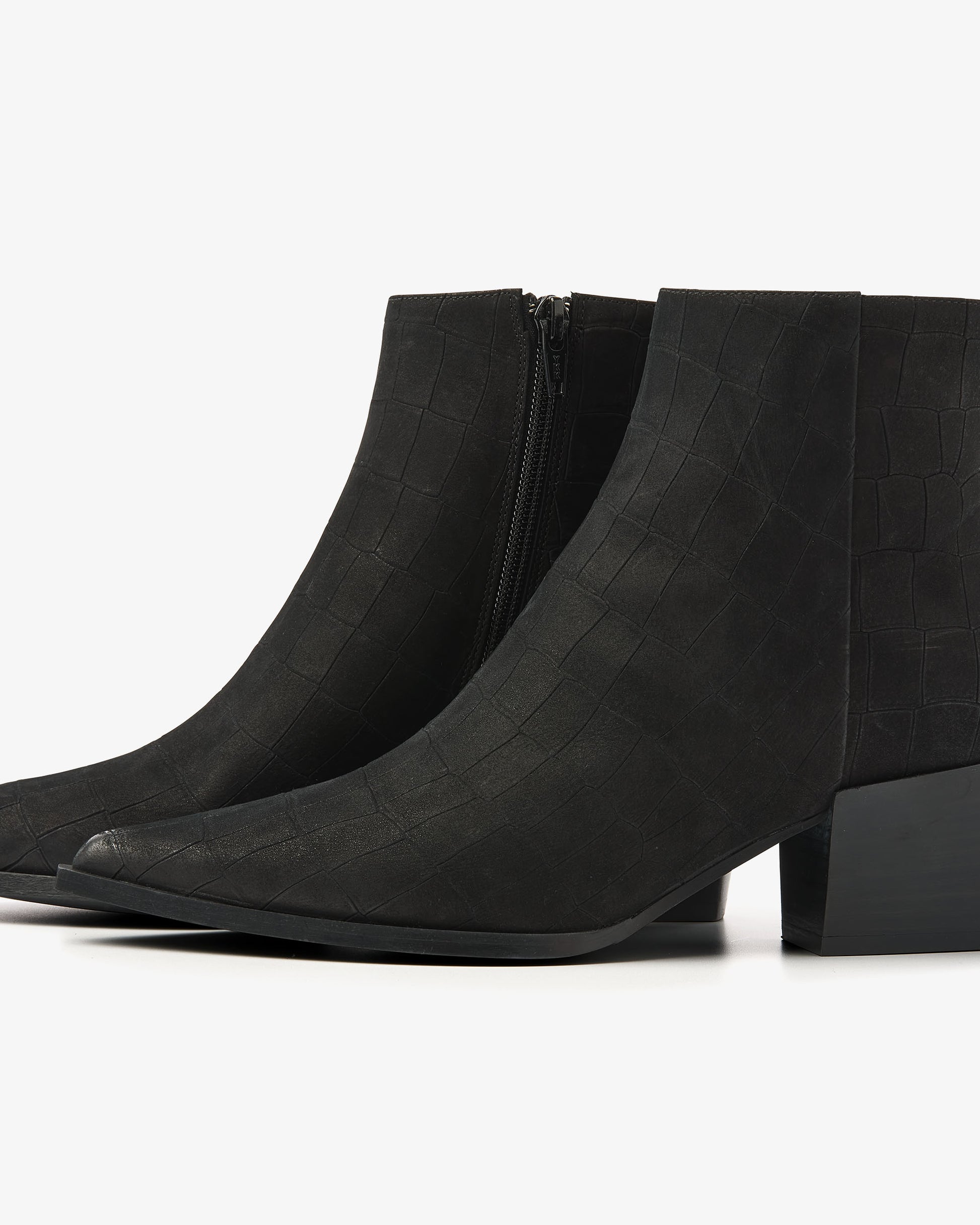 This season's must-have ankle boot? That's Kate Malina. The booties are made of luxurious leather with a surprising reptile embossing. The block heel has a playful height difference with the sole and the pointed toe gives the booties an edgy twist. This makes Kate Malina the perfect combination of daring and feminine. Ready to spice up your outfit?