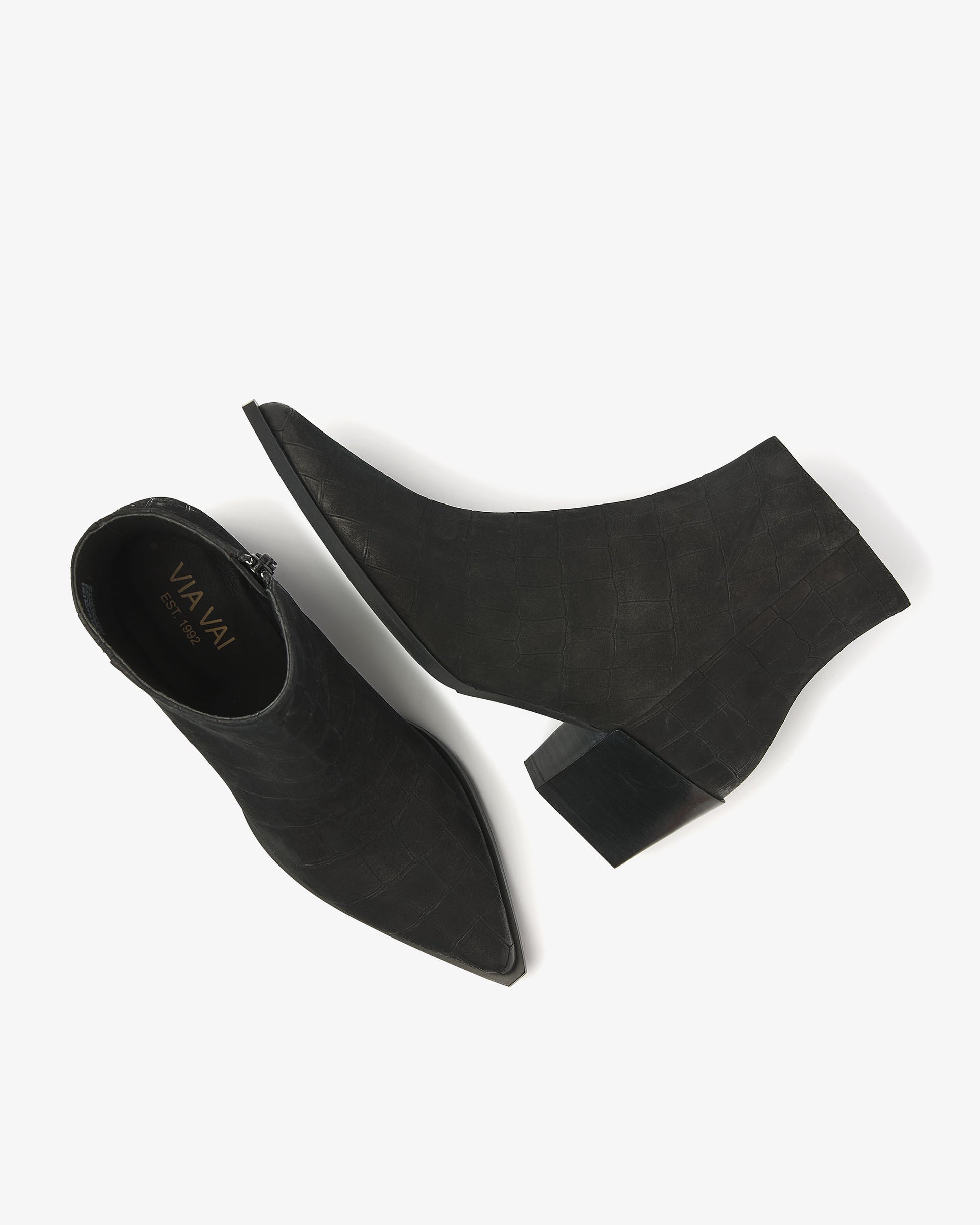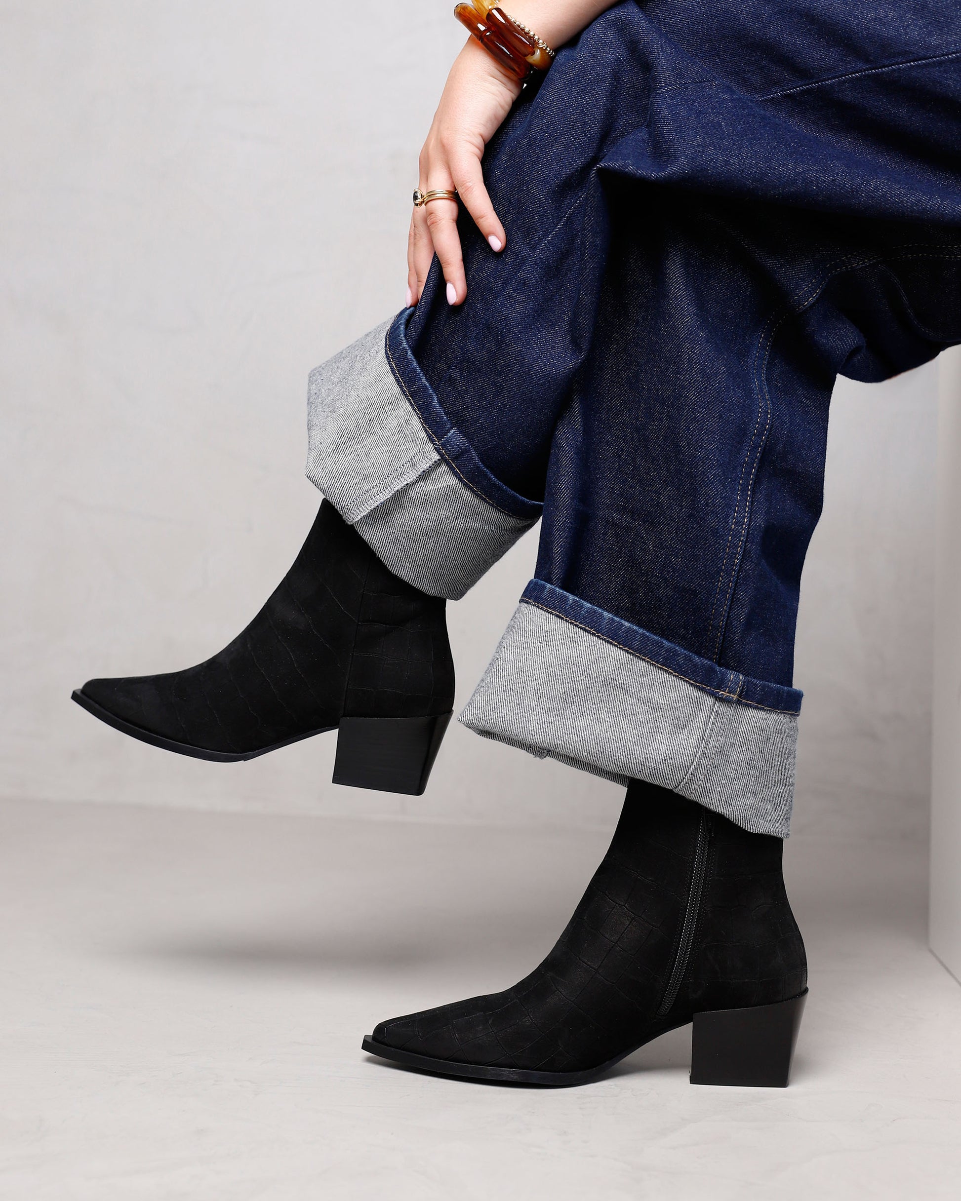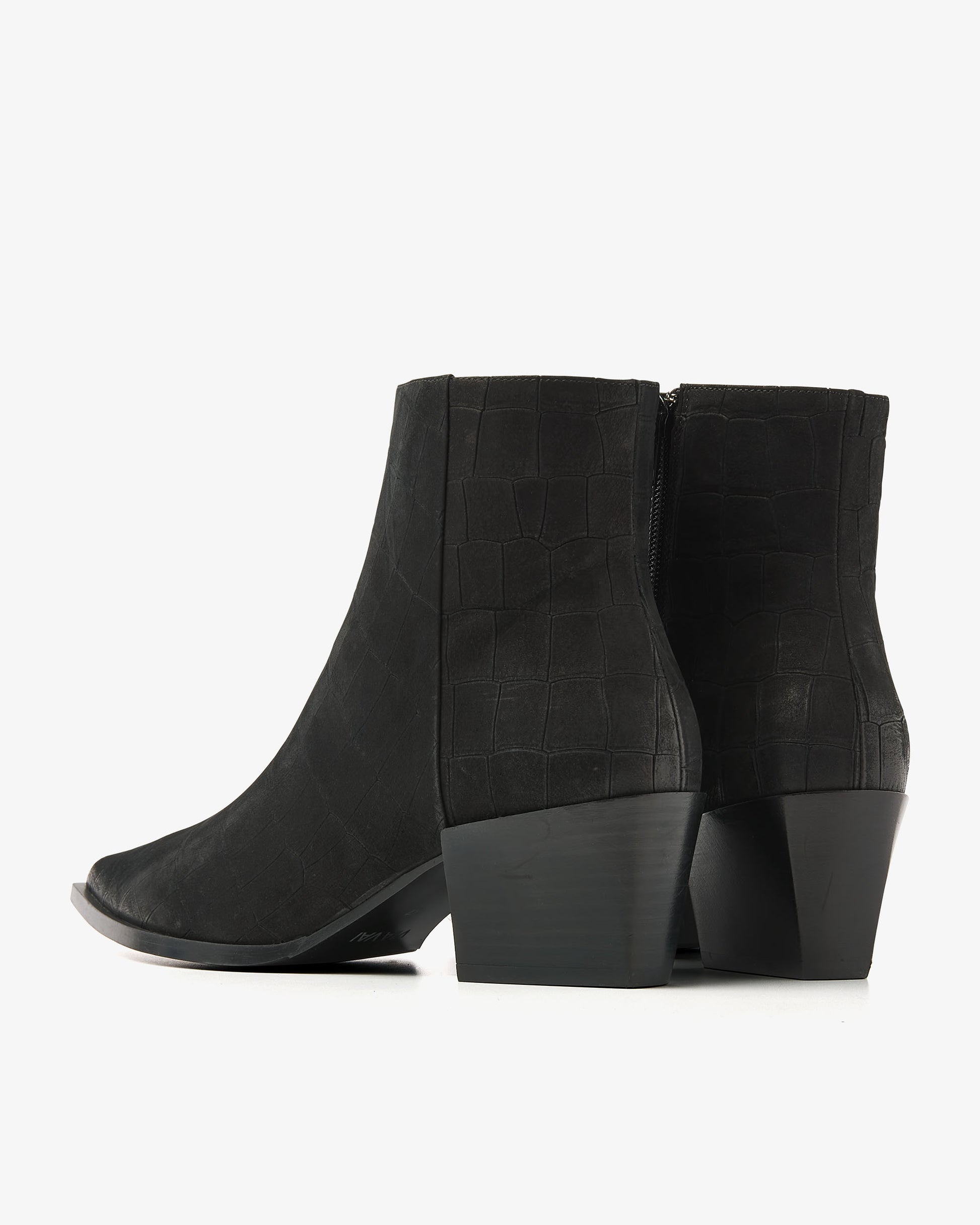 This season's must-have ankle boot? That's Kate Malina. The booties are made of luxurious leather with a surprising reptile embossing. The block heel has a playful height difference with the sole and the pointed toe gives the booties an edgy twist. This makes Kate Malina the perfect combination of daring and feminine. Ready to spice up your outfit?