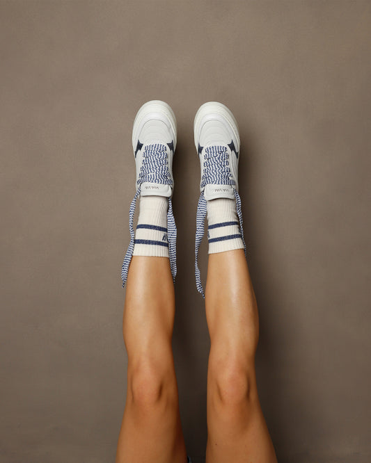Sneakers with thick laces are a statement in themselves. You can style them in different ways, depending on your personal taste and the occasion. For example, combine them with tight jeans and an oversized sweater for a casual, yet stylish look. For a feminine touch, wear them with a midi skirt and a simple t-shirt. These sneakers can also work surprisingly well under a suit, giving your outfit a modern, casual flair. This way, you can always stay effortlessly chic, whether you opt for a day out or a casual work setting. If sneakers with thick laces aren't really your thing, take a look at the platform sneakers by VIA VAI. These are also great to combine with a suit. You can also choose retro sneakers women as a fashion statement. Whatever you go for, by mixing and matching different styles you will always be on-trend.
