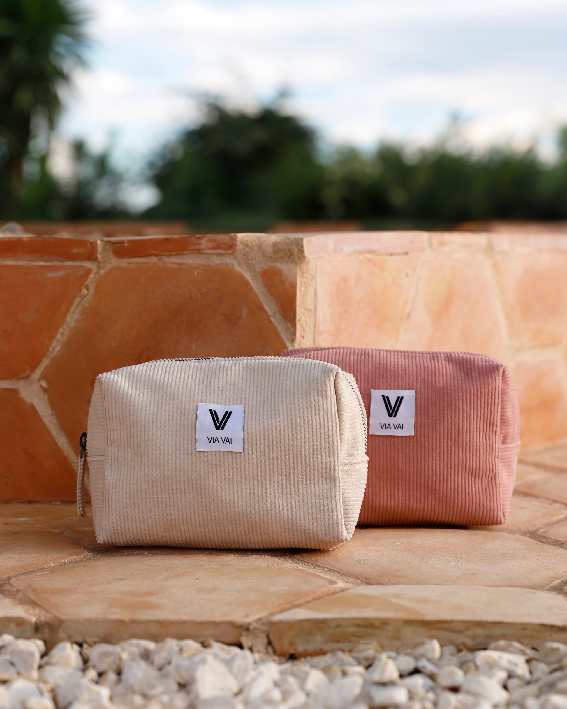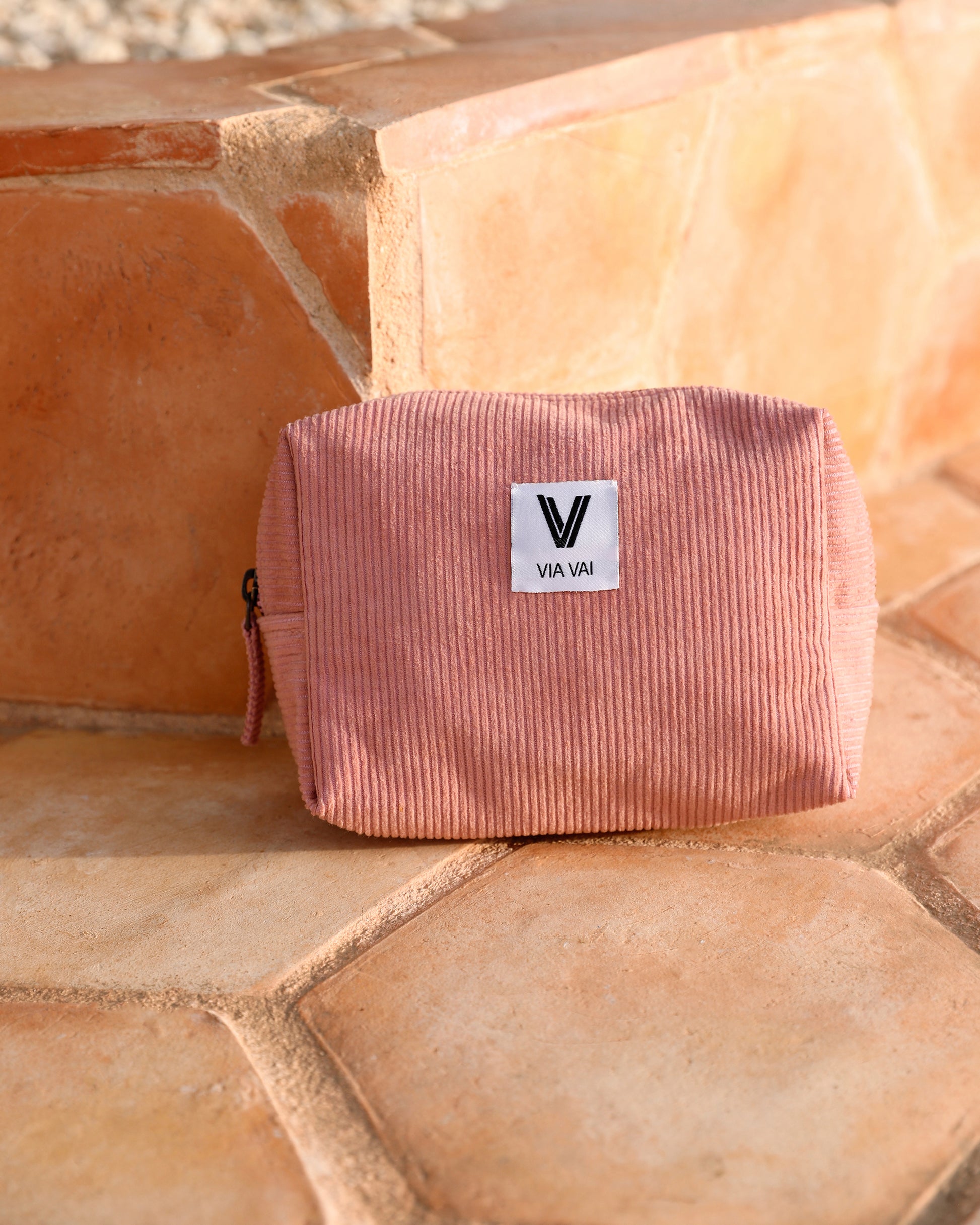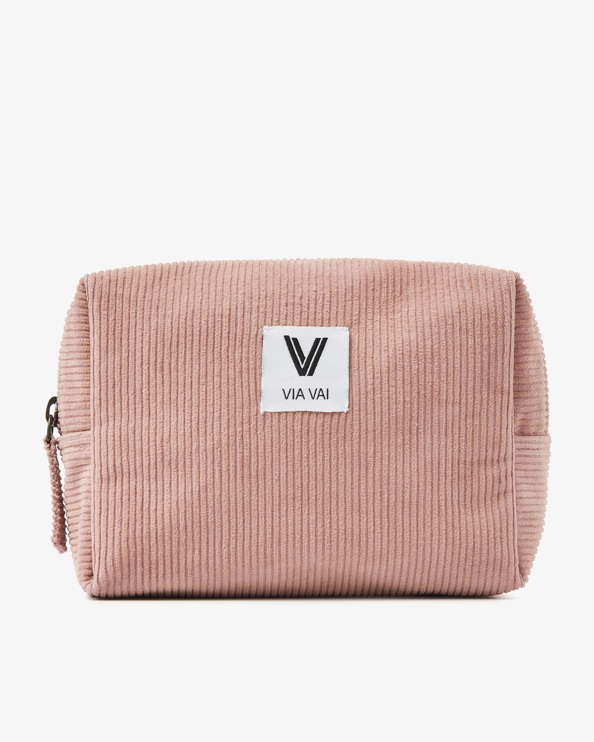 Meet Billie Rose: made from soft ribbed fabric and featuring a sturdy metal zipper, this is your new go-to toilet bag. A subtle label with the VIA VAI logo is stitched onto the front, giving it a refined touch. Thanks to its compact size and timeless design, this toiletry bag is ideal for your city trip or island vacation. Functional, stylish, and always within reach.