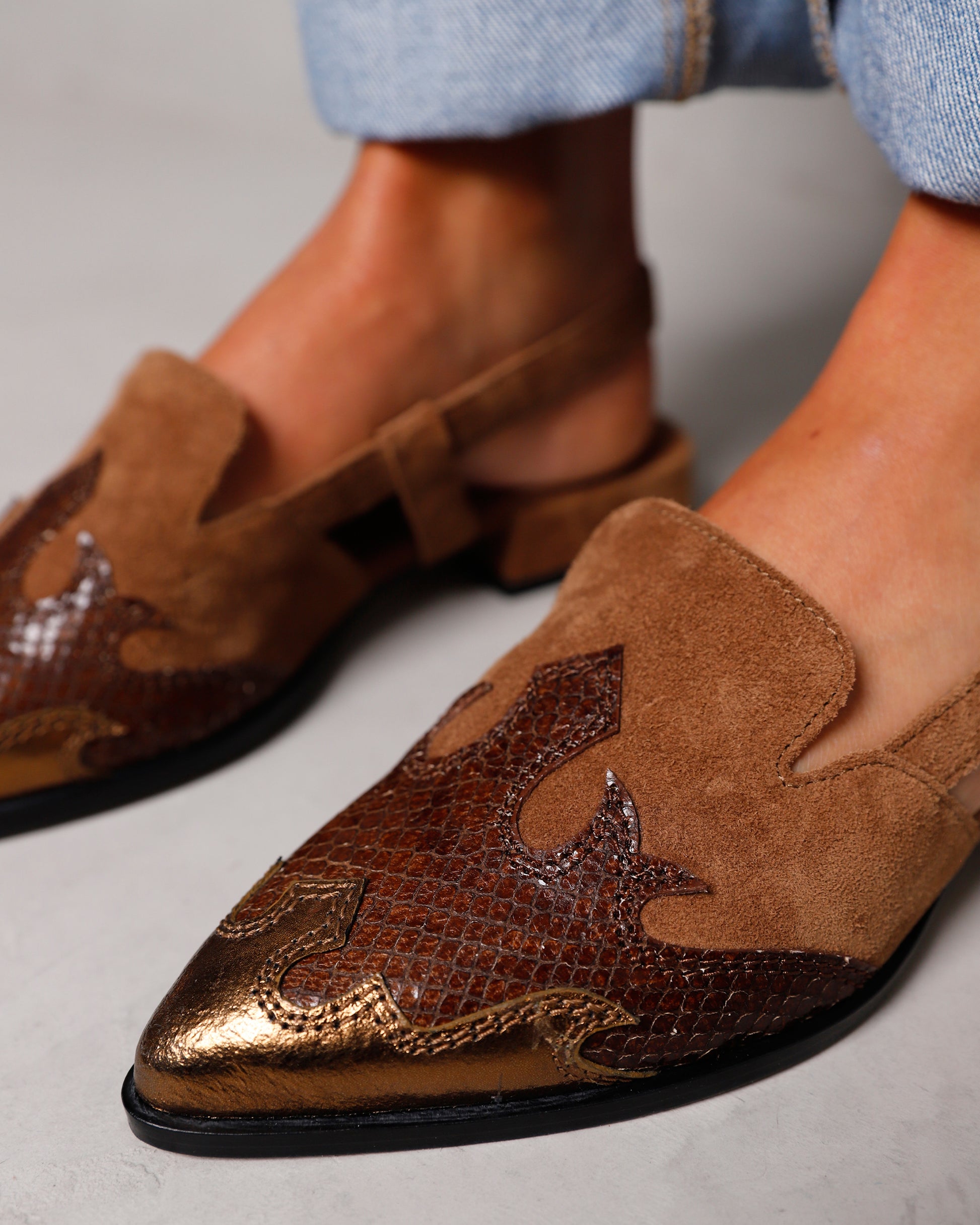 - Suede with metallic details