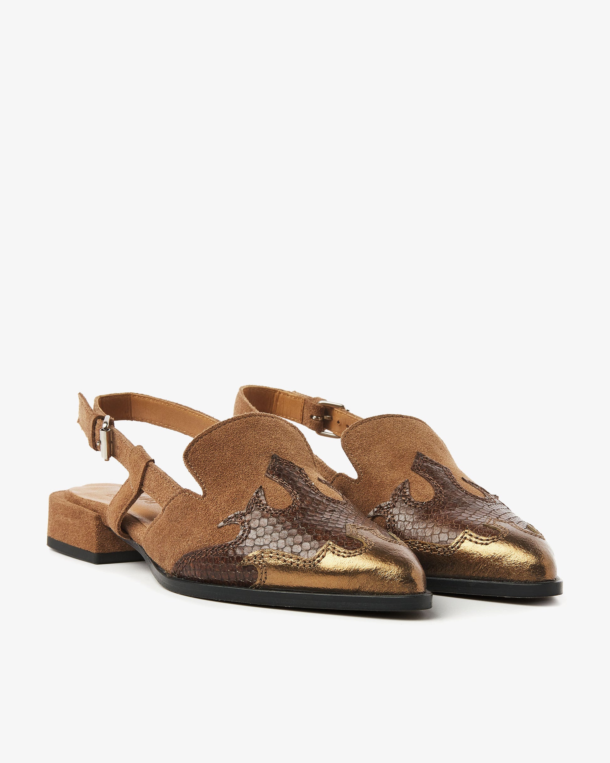 Classy, stylish & trendy: Jazz Vaienna has it all. With their pointed toe, these cognac slingbacks exude elegance. The functional buckle makes it easy to take the shoes on and off. The metallic finish combined with the suede gives a sophisticated touch to any outfit. Jazz Vaienna will have you looking fashionable no matter the occasion!