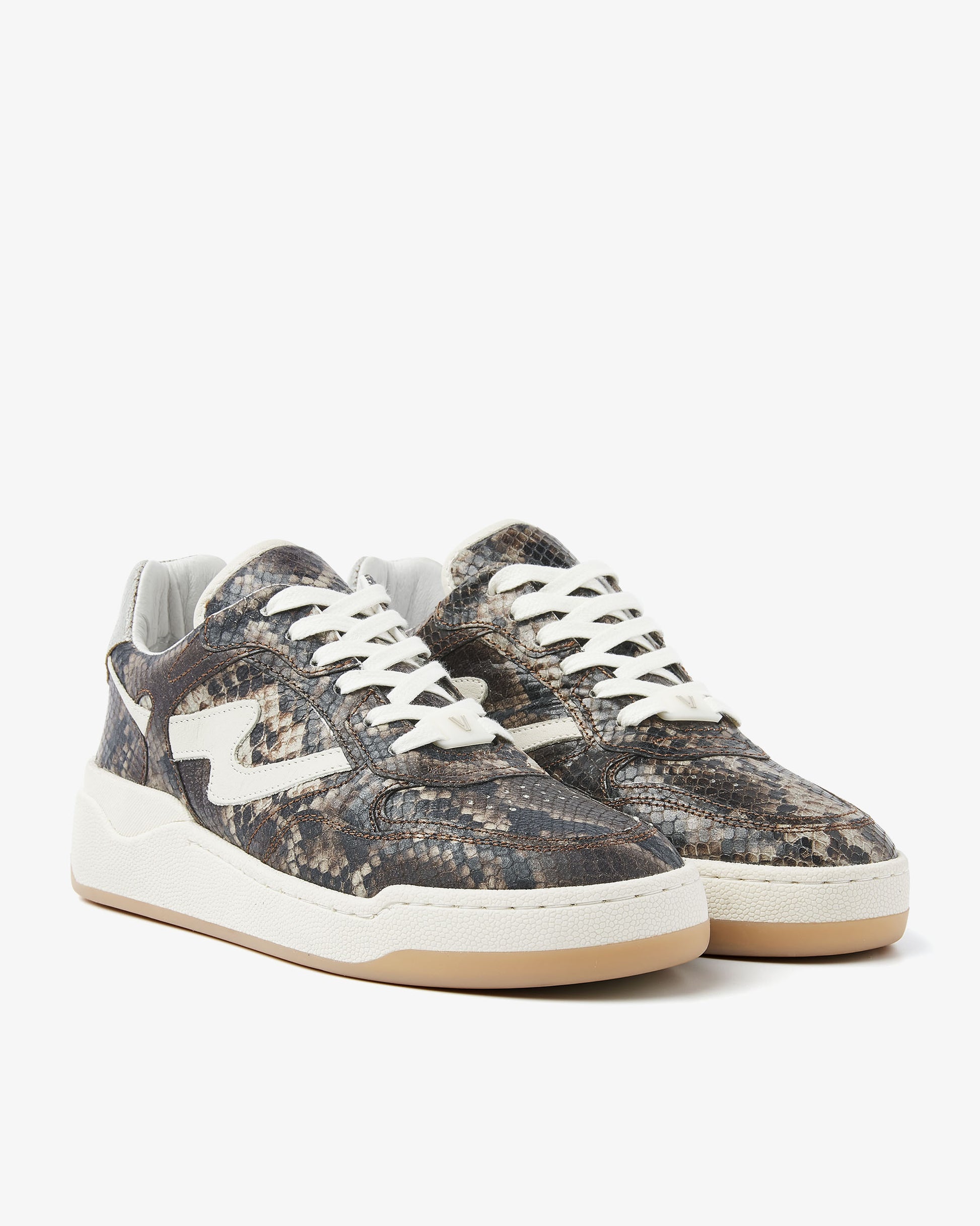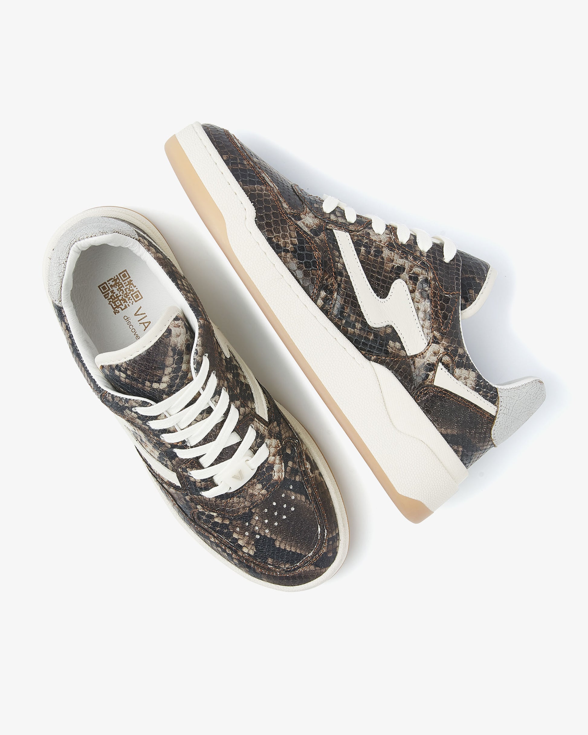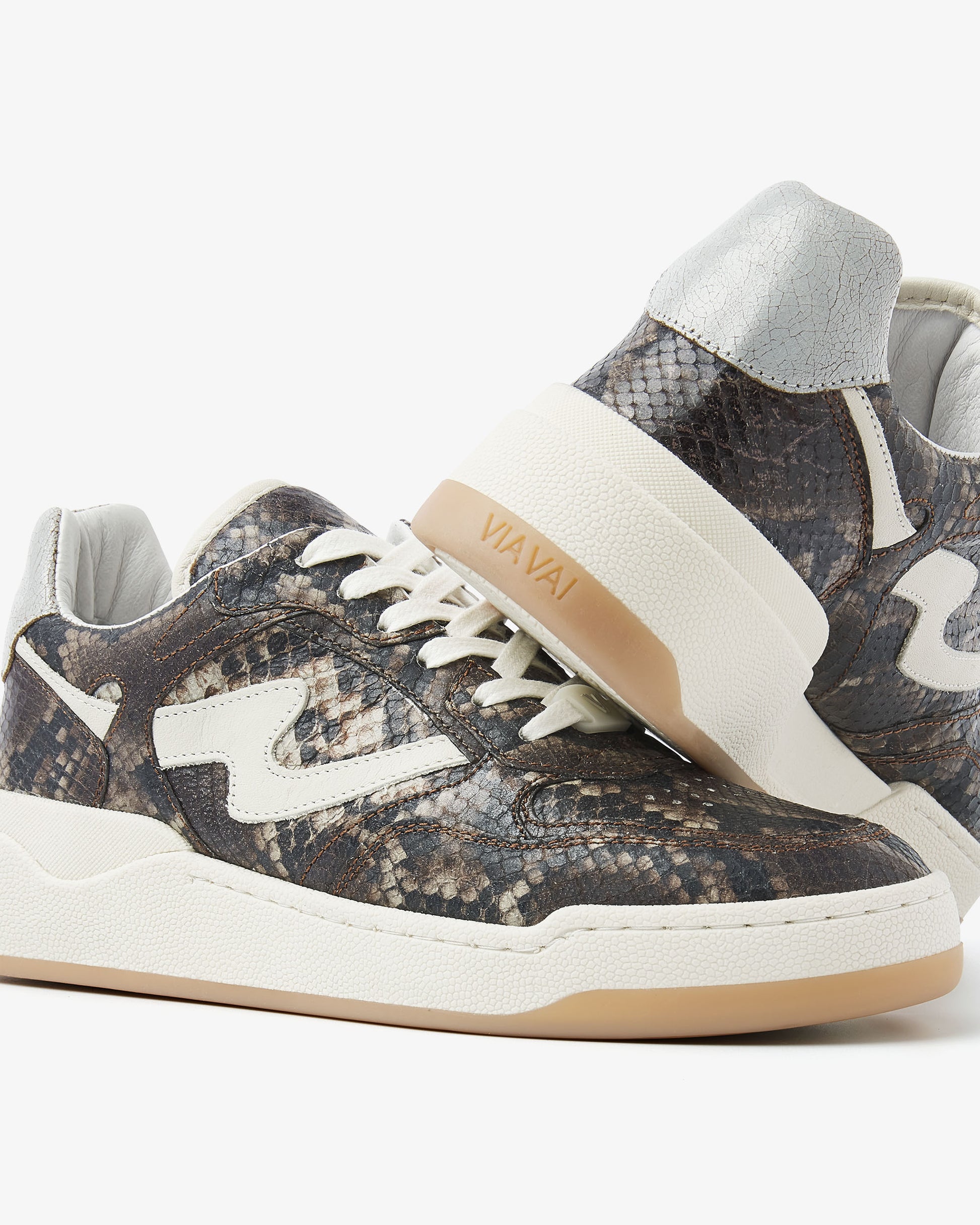 Retro vibes all-over! These sneakers with all-over snake print have a sporty look and feel. You can tell by the perforations on the toe cap and dynamic lines, among other things. The combination of different materials and textures gives Sam Levi a soft edge with a feminine touch. One look at these sneakers and your shoe heart will beat faster!
