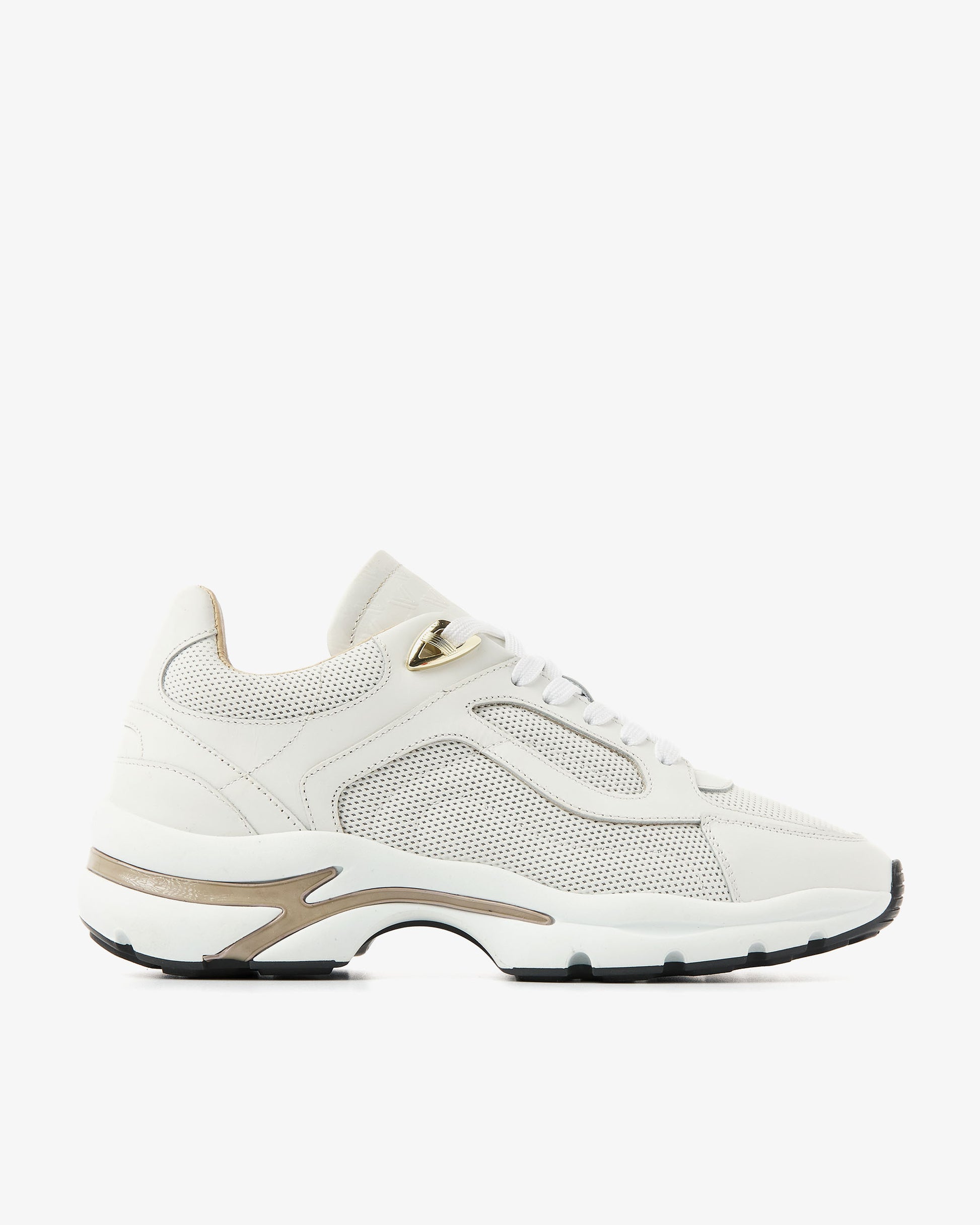 Stylish and sporty: this is the Vesper Layla. The chunky sole with subtle beige accents gives the sneaker a modern, sporty twist, while the gold eyelets add a luxurious touch. Vesper Layla is made from high-quality leather for a sleek look. Thanks to its timeless design, this sneaker goes with any outfit. Comfortable and versatile: Vesper Layla has it all!