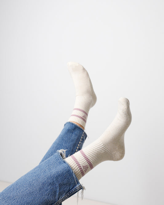 Rock je look met VIA VAI sokken! Ga voor een college look en combineer de sokken met een leren loafer. Stoer en edgy! Voor een sportieve look style je de sokken met sneakers met daarin een matchend kleurtje. Echt een eigen look creëren? Draag je sokken dan in combinatie met een chelsea boot en zorg dat de rand van je sokken nét boven de boots uitkomen. De mogelijkheden zijn eindeloos!