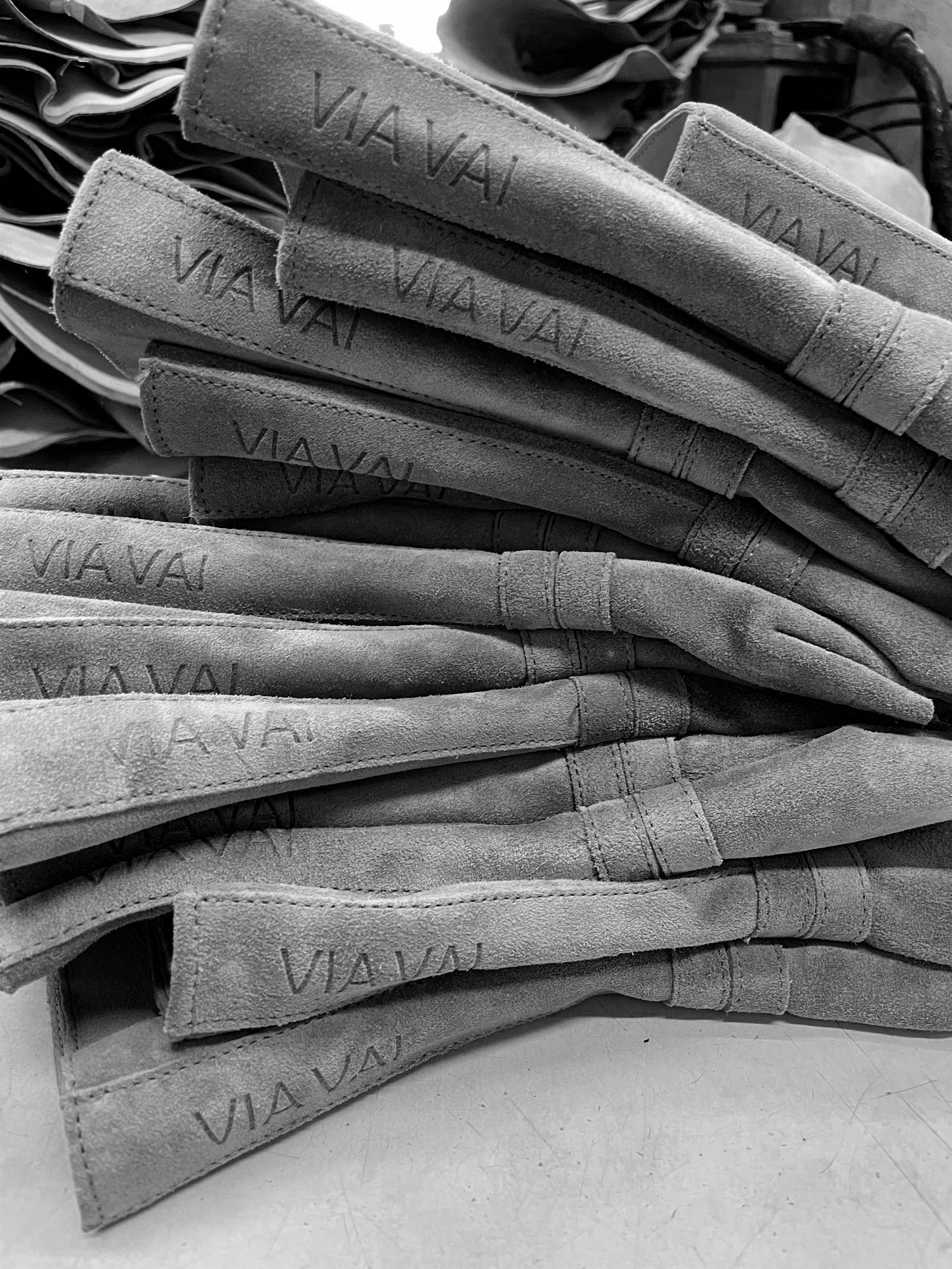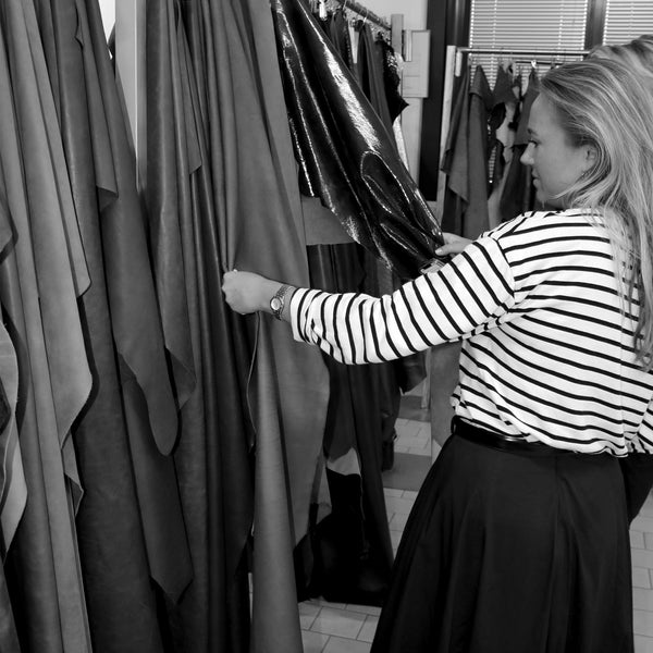 90% van onze materialen komt uit Italië. Ieder jaar gaan we naar een speciale materialen beurs om daar de beste materialen uit te zoeken voor de nieuwe collectie.