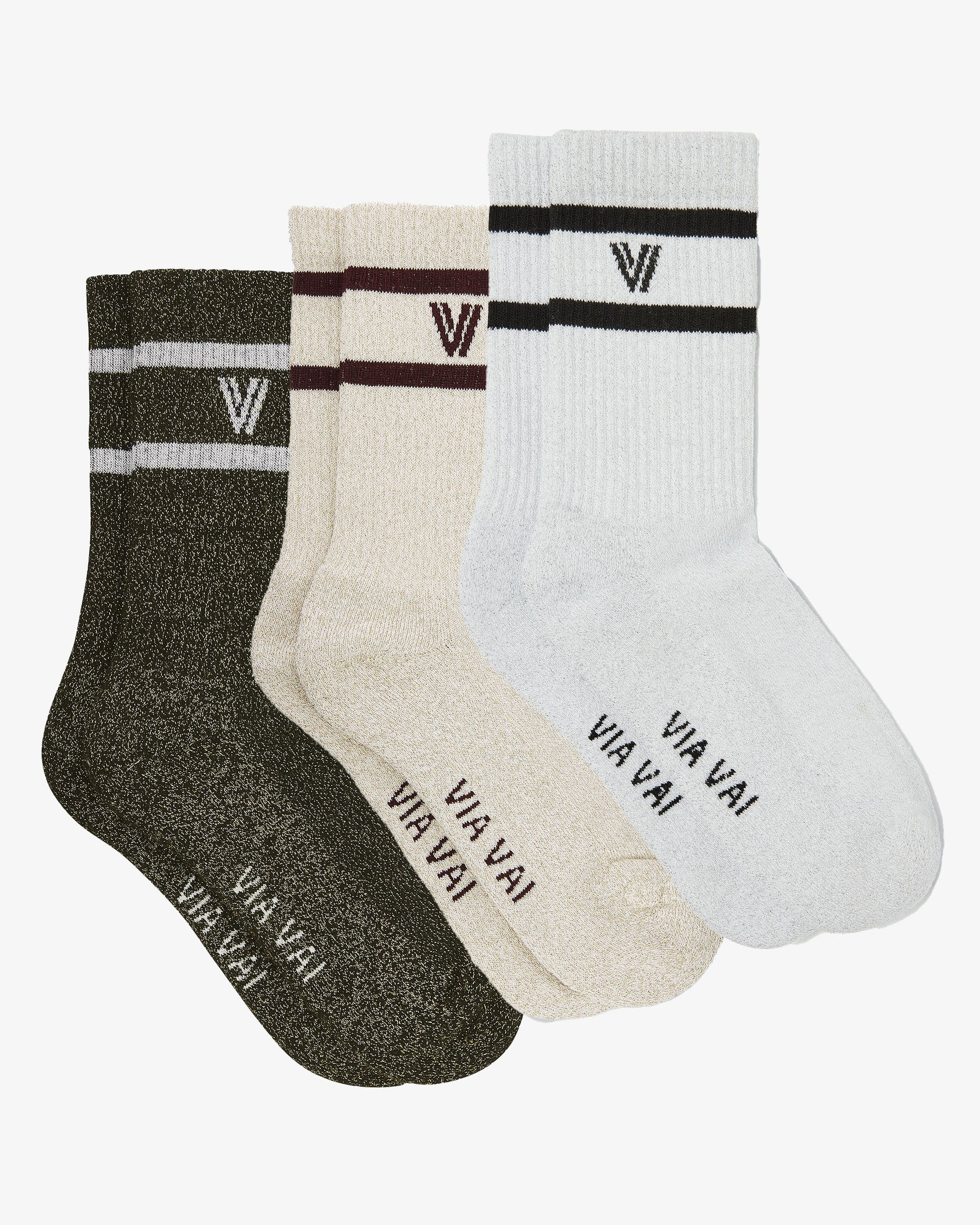 - Set van 3 paar sportieve sokken in zwart/goud, zilver/zwart en crème/bordeaux